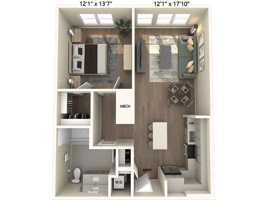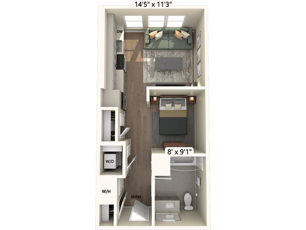 Modelo de apartamento: S1-UpgradeDesde $2,375Estudio, 1 Baño, 491 sq ftDisponible January 10, 2026![]()