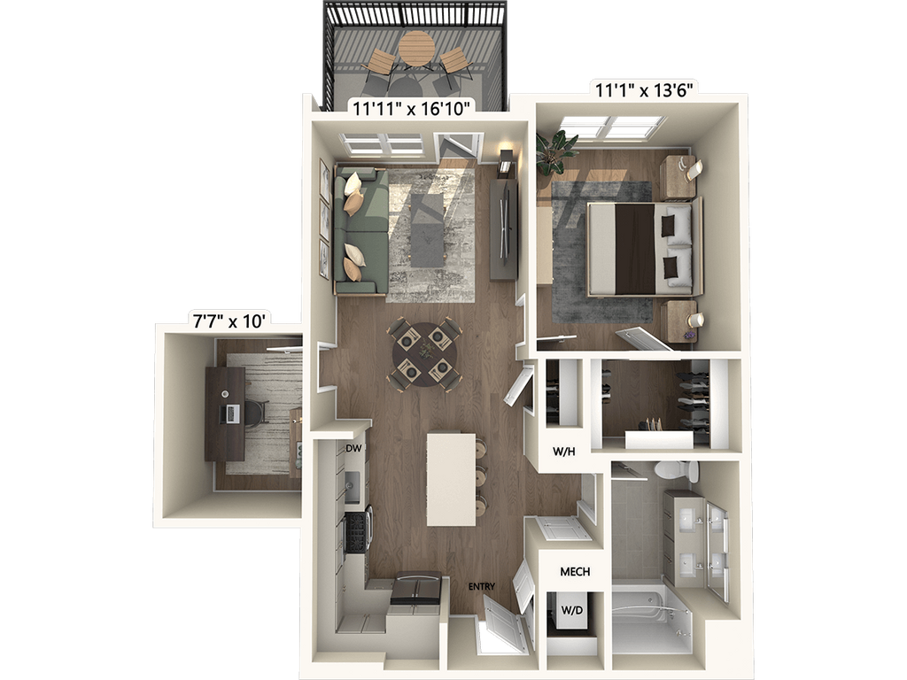 1 Dormitorio, 1 Baño, 745 pies²Disponible AhoraGalería del Modelo