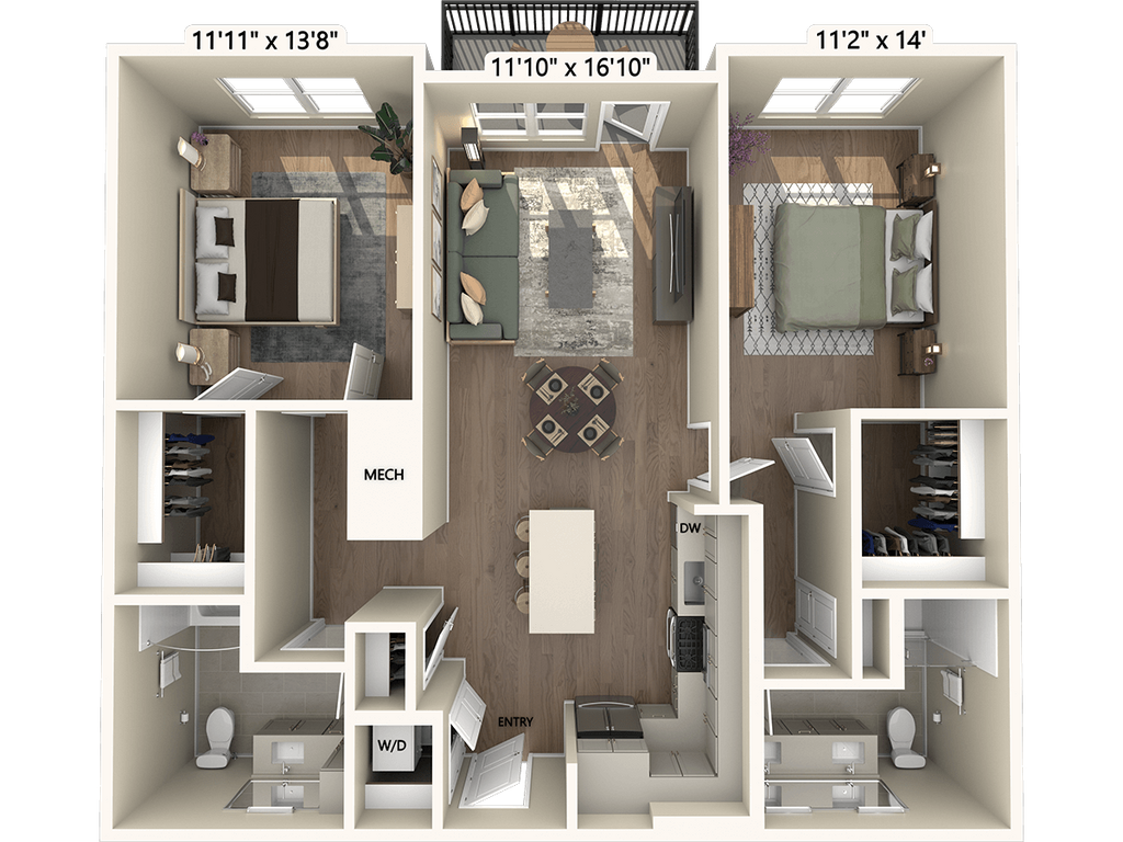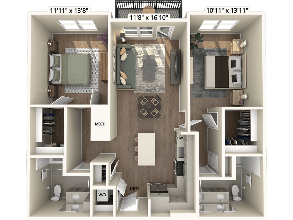 1 Dormitorio, 2 Baños, 992 pies²Disponible AhoraEl más grandeEsta opción tiene las unidades más grandes para este modeloGalería del Modelo