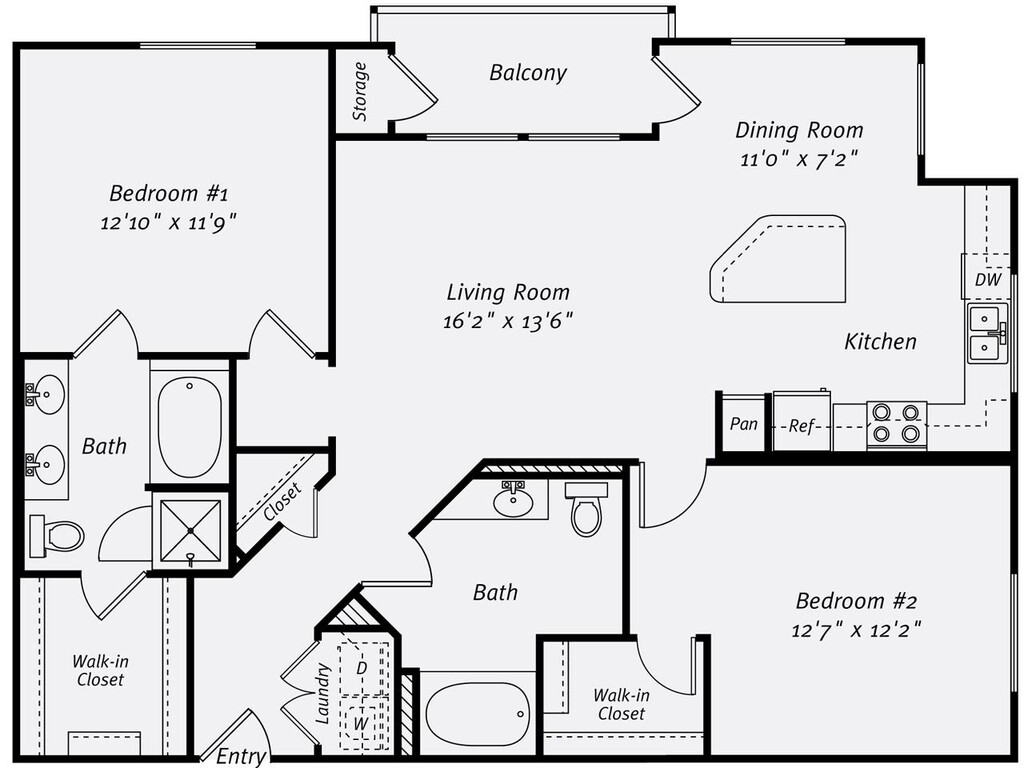 1 Dormitorio, 1 Baño, 1043 pies²Disponible May 9El más grandeEsta opción tiene las unidades más grandes para este modeloGalería del Modelo
