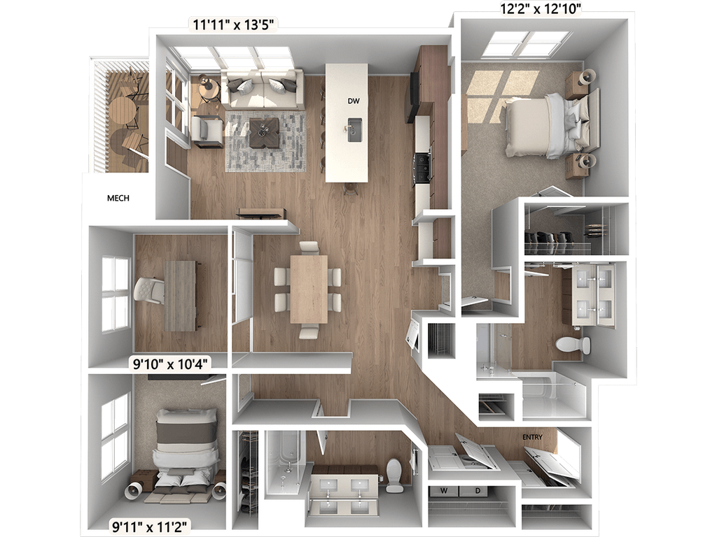 CM5 - Plano 1 Unidad de apartamento: 002-401Modelo de apartamento: CM53 Dormitorios, 2 Baños, 1420 sq ftDisponible March 3, 2026C3AVL-C3AM
