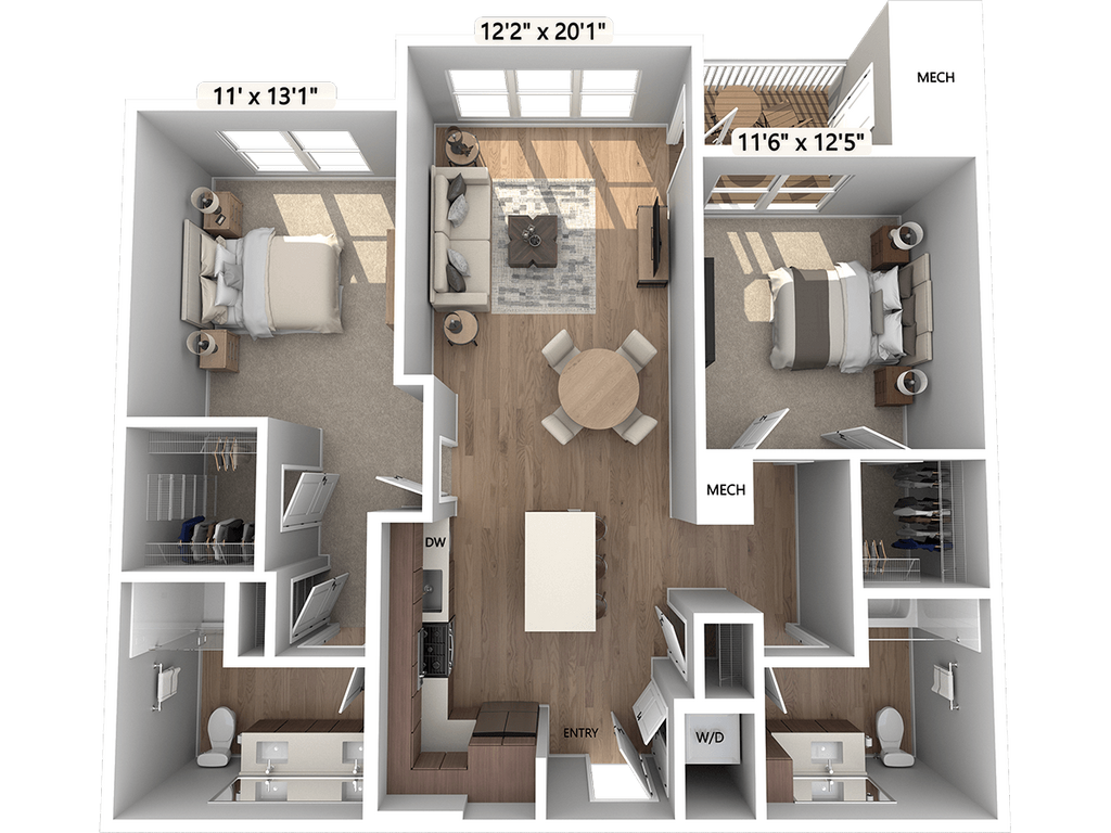 B7 - Plano 1 Unidad de apartamento: 002-313Modelo de apartamento: B72 Dormitorios, 2 Baños, 1139 sq ftDisponible April 2, 2026B20AL-B20AM