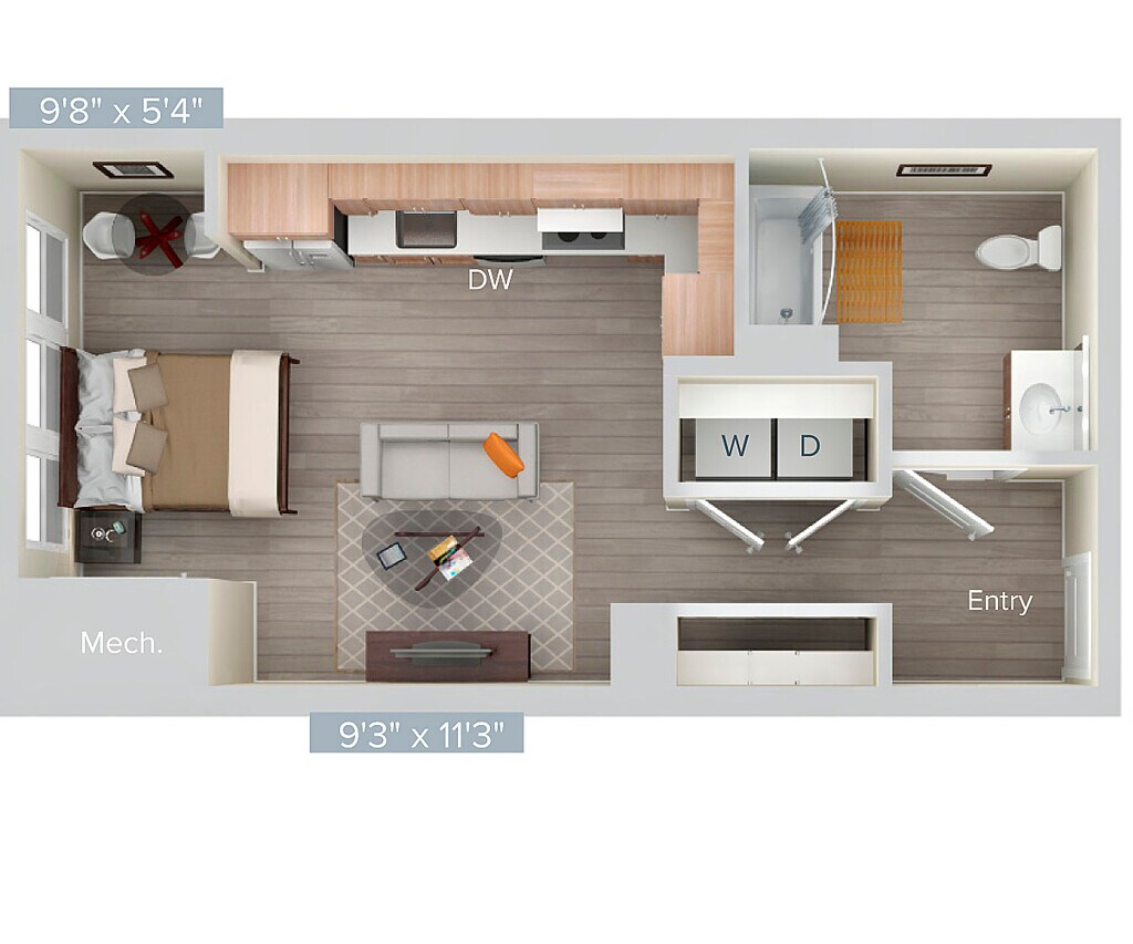 Estudio, 1 Baño, 577 pies²Precio Mensual TotalDisponible Dec 3El más grandeEsta opción tiene las unidades más grandes para este modeloGalería del Modelo