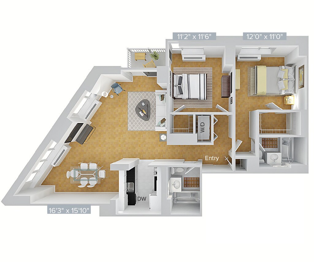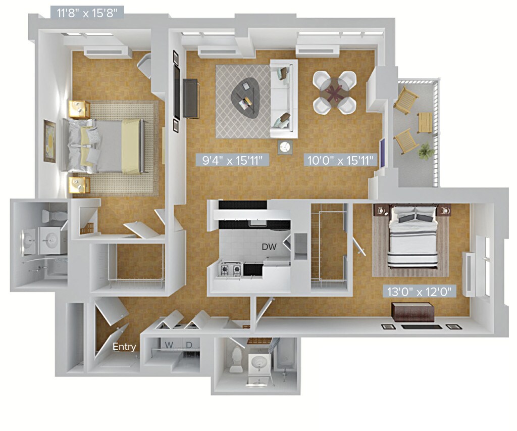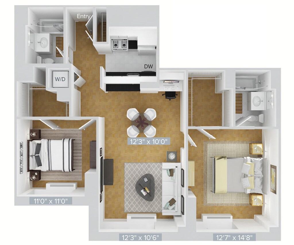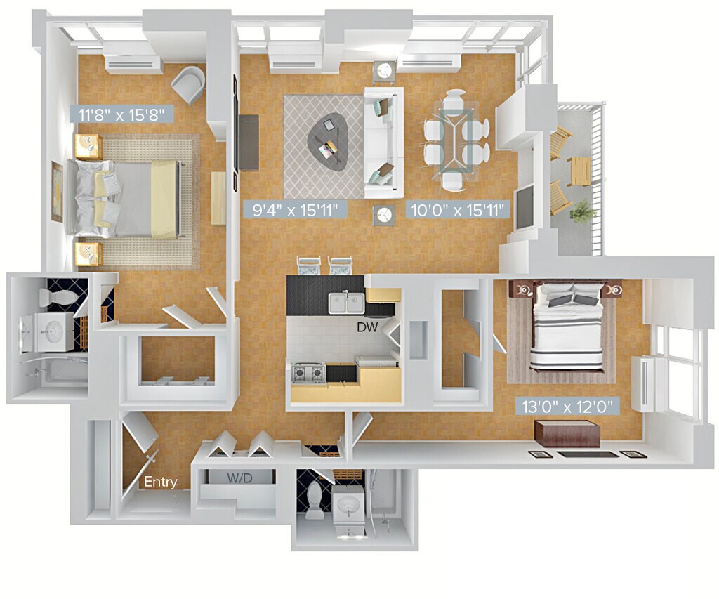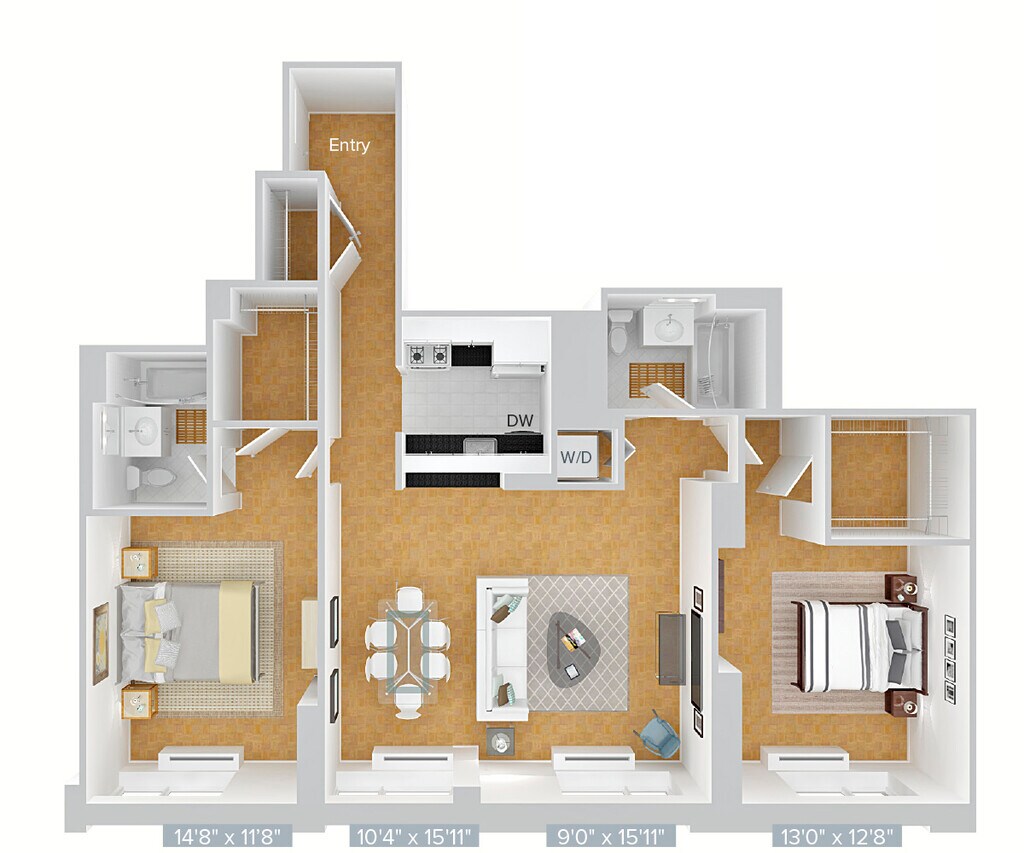 Modelo de apartamento: A2T$4,0451 Dormitorio, 1 Baño, 652 sq ftDisponible Ahora![]()