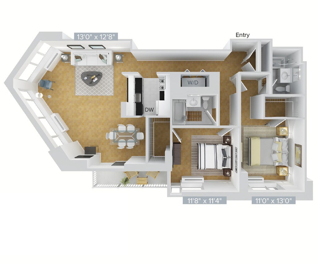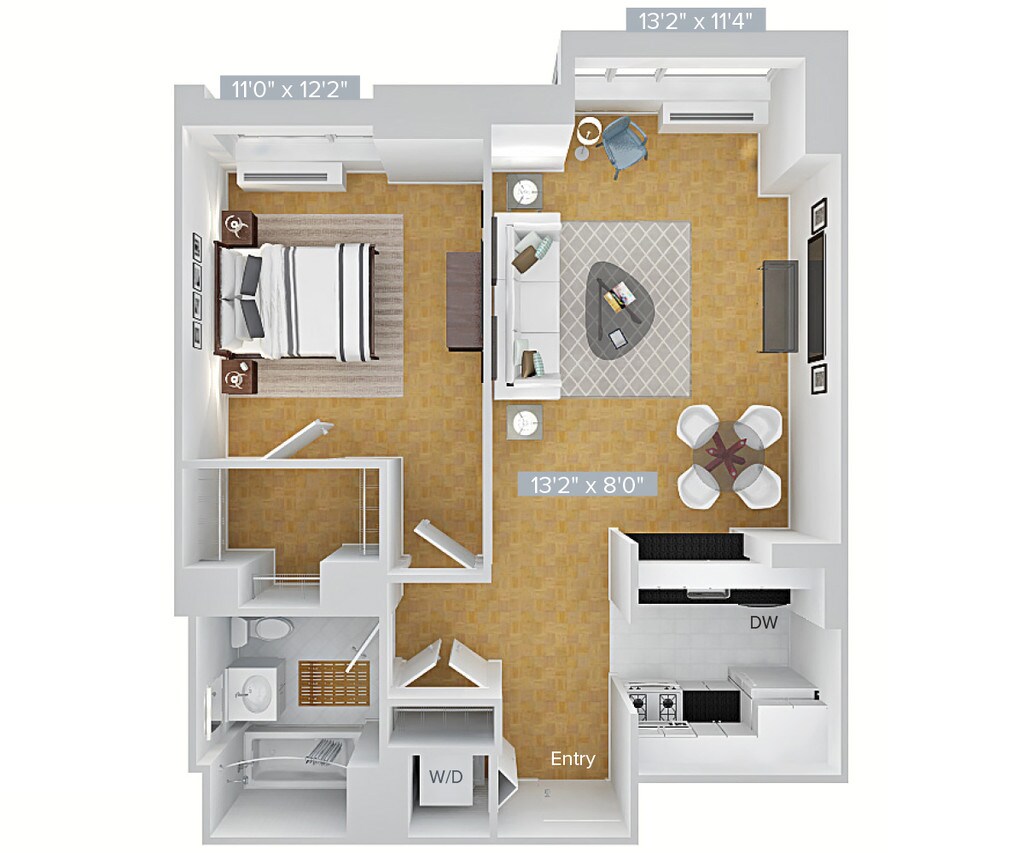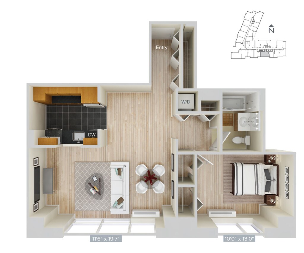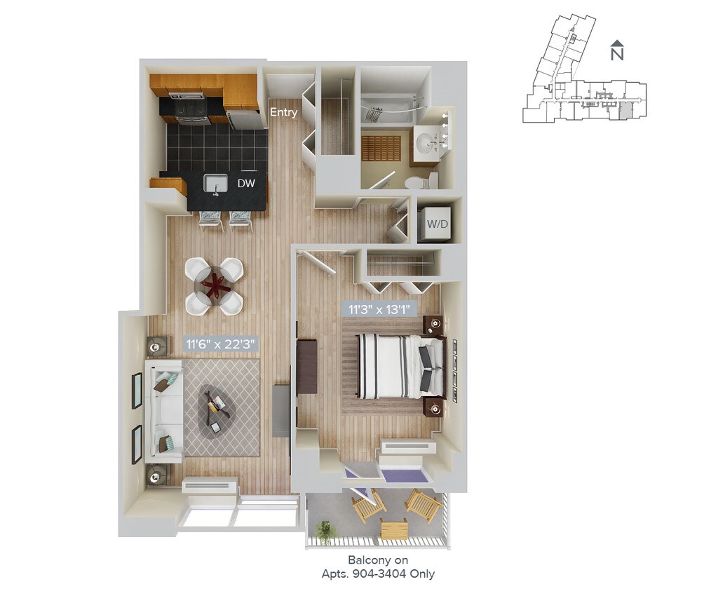 Modelo de apartamento: A11$3,9051 Dormitorio, 1 Baño, 606 sq ftDisponible Ahora![]()