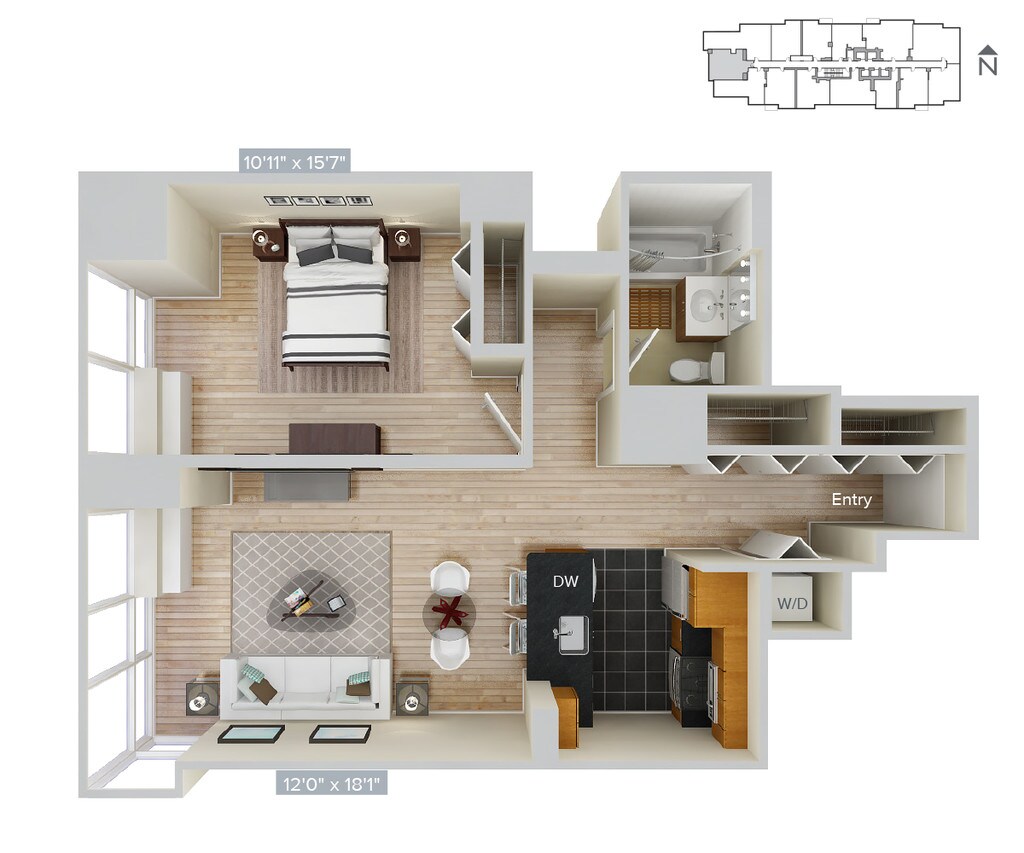Modelo de apartamento: S1-481-upgradeDesde $3,096Estudio, 1 Baño, 481 sq ftDisponible Ahora![]()