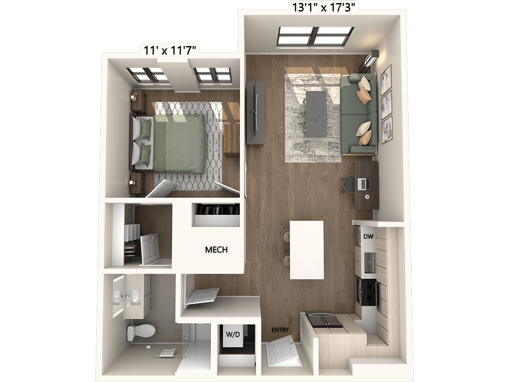 1 Dormitorio, 1 Baño, 812 pies²Disponible AhoraGalería del Modelo