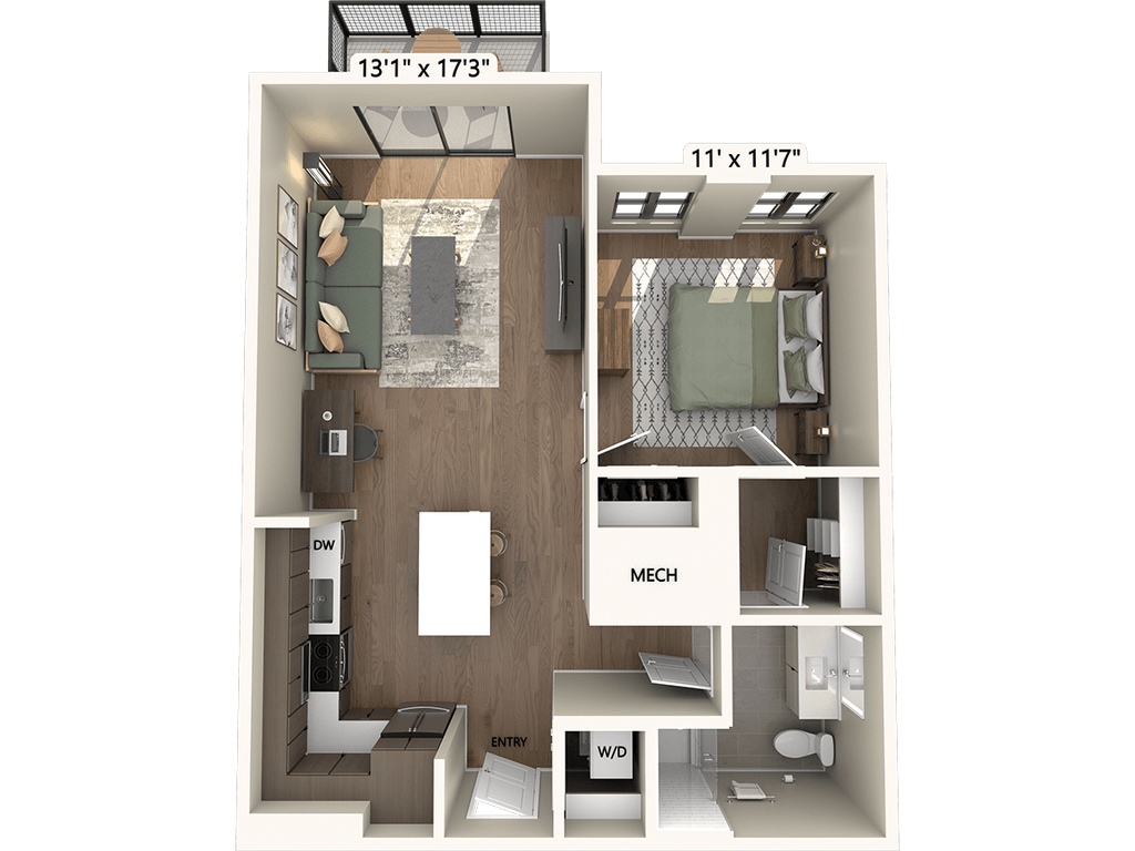 1 Dormitorio, 1 Baño, 762 pies²Disponible AhoraGalería del Modelo