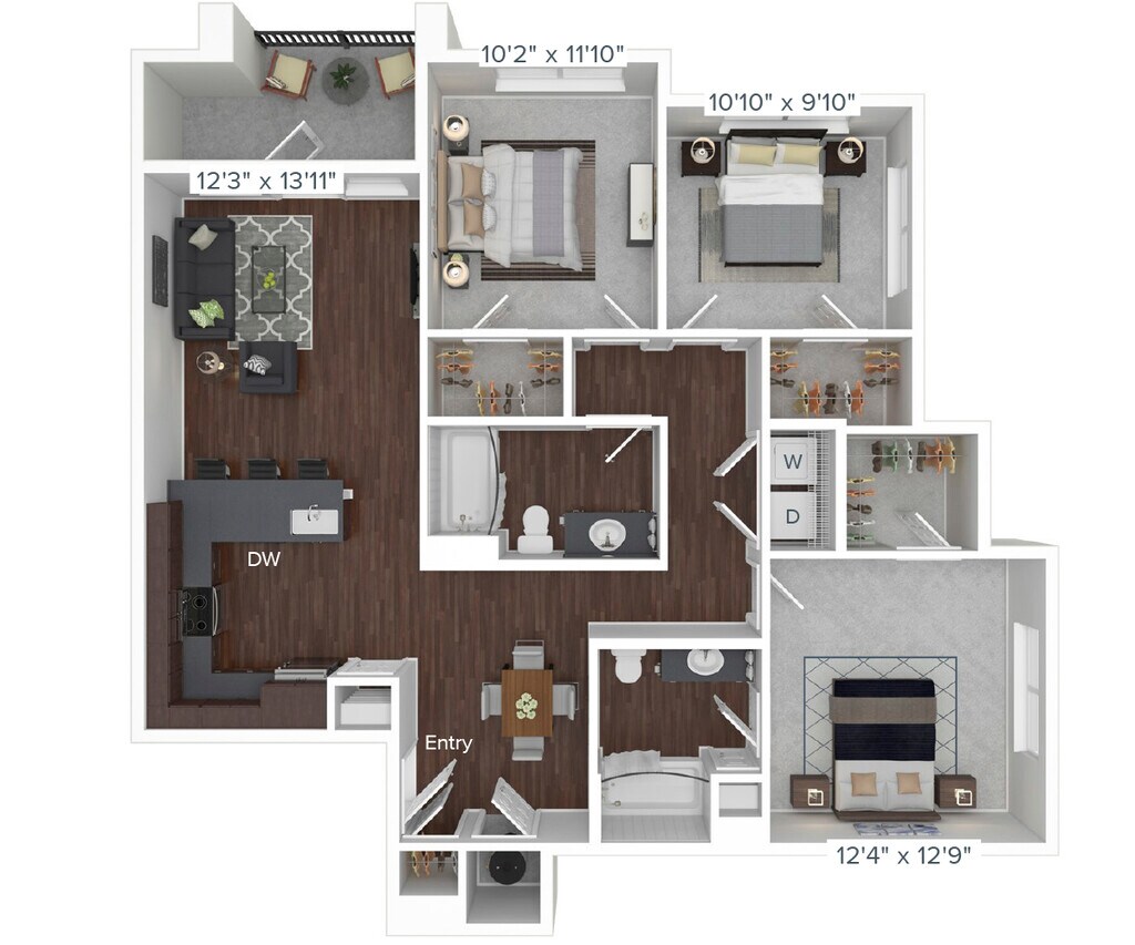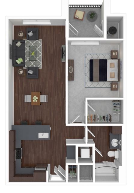 Modelo de apartamento: A1-707Desde $1,5901 Dormitorio, 1 Baño, 707 sq ftDisponible Ahora![]()