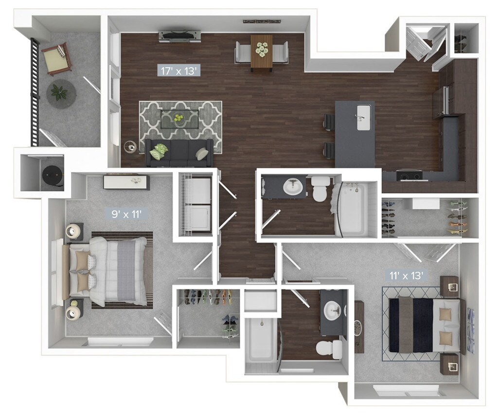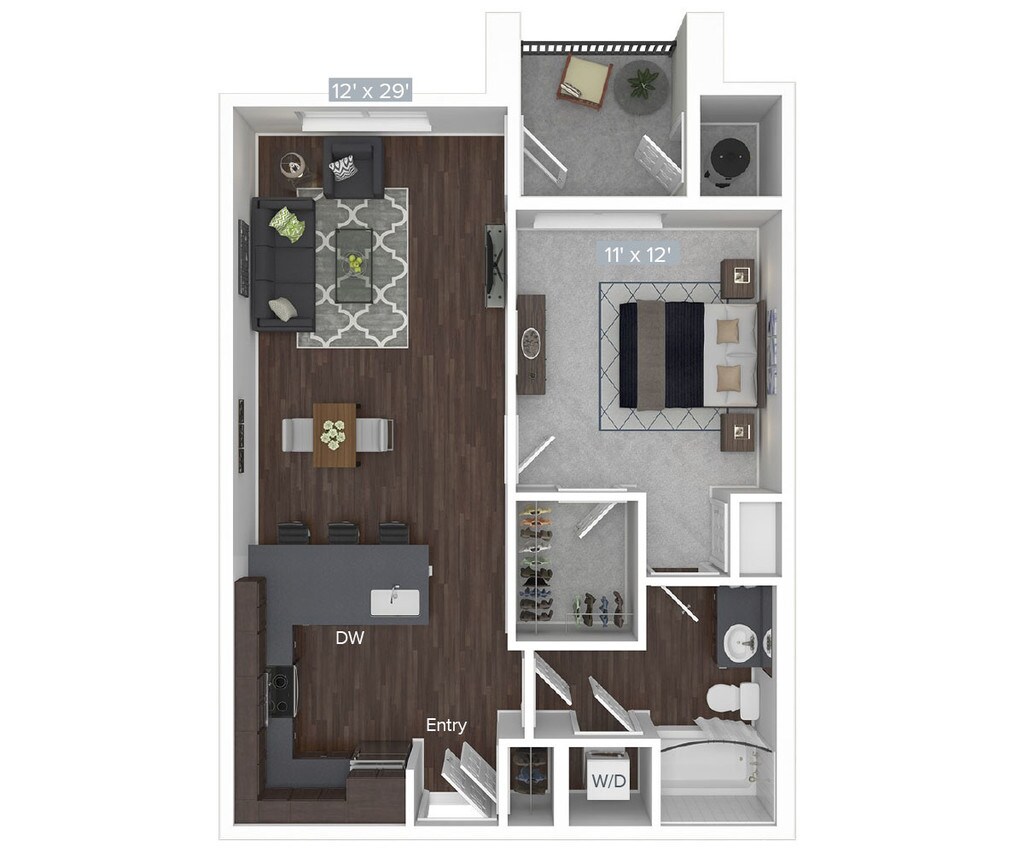 1 Dormitorio, 1 Baño, 816 pies²Disponible AhoraEl más grandeEsta opción tiene las unidades más grandes para este modeloGalería del Modelo