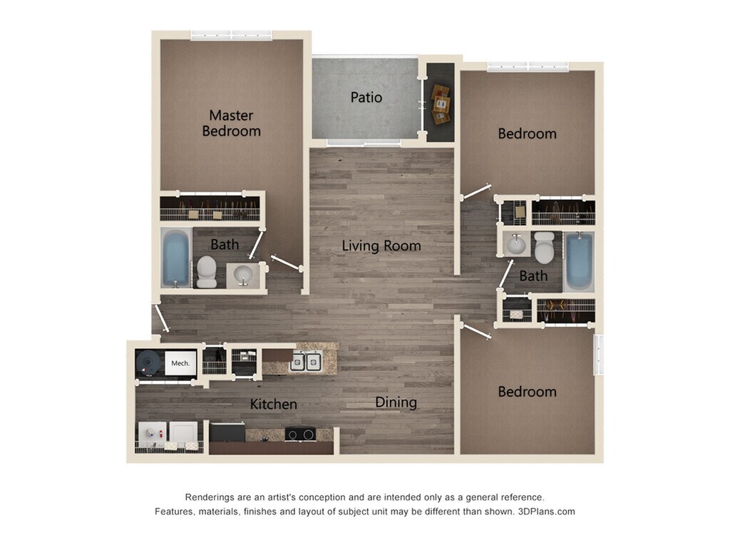 3 Dormitorios, 2 Baños, 1200 pies²Galería del Modelo