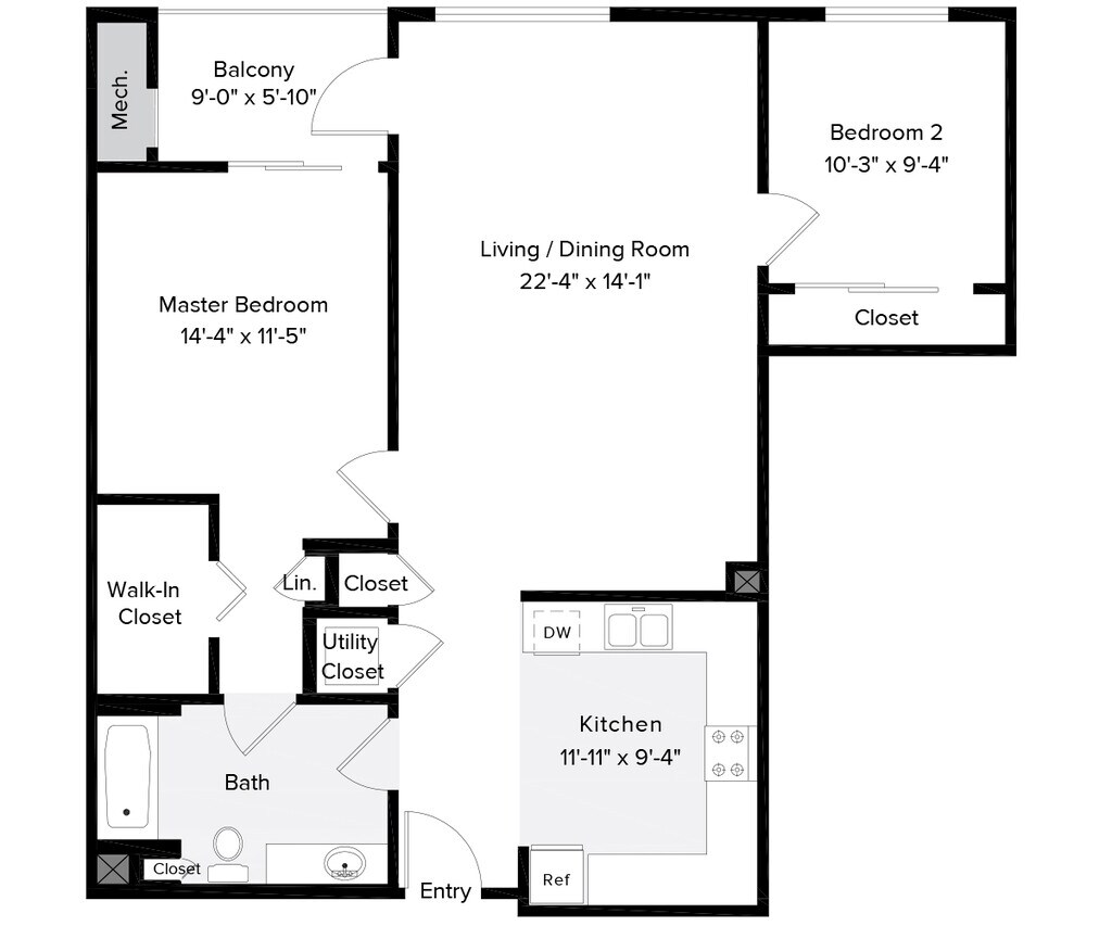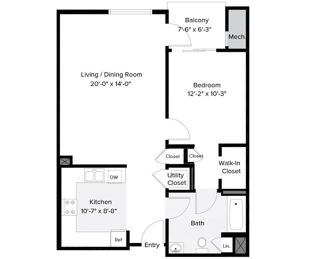 1 Dormitorio, 1 Baño, 1525 pies²Disponible AhoraEl más grandeEsta opción tiene las unidades más grandes para este modeloGalería del Modelo