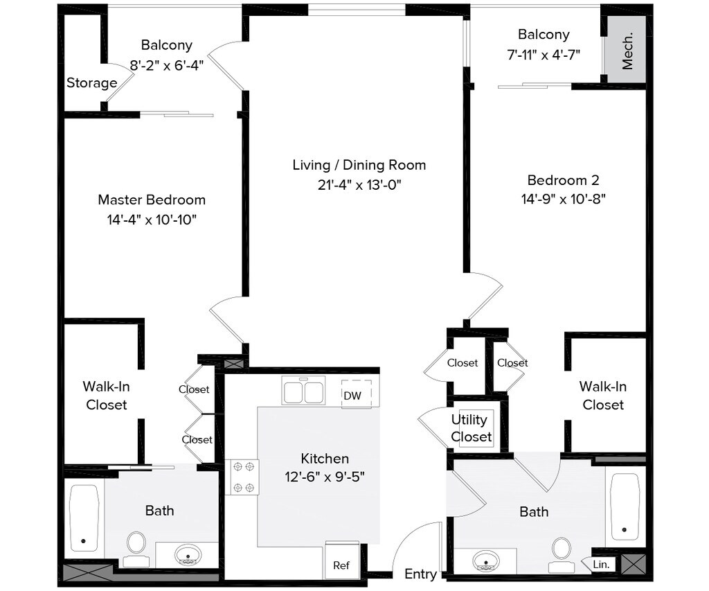 2 Dormitorios, 2 Baños, 1314 pies²Disponible AhoraEl más grandeEsta opción tiene las unidades más grandes para este modeloGalería del Modelo