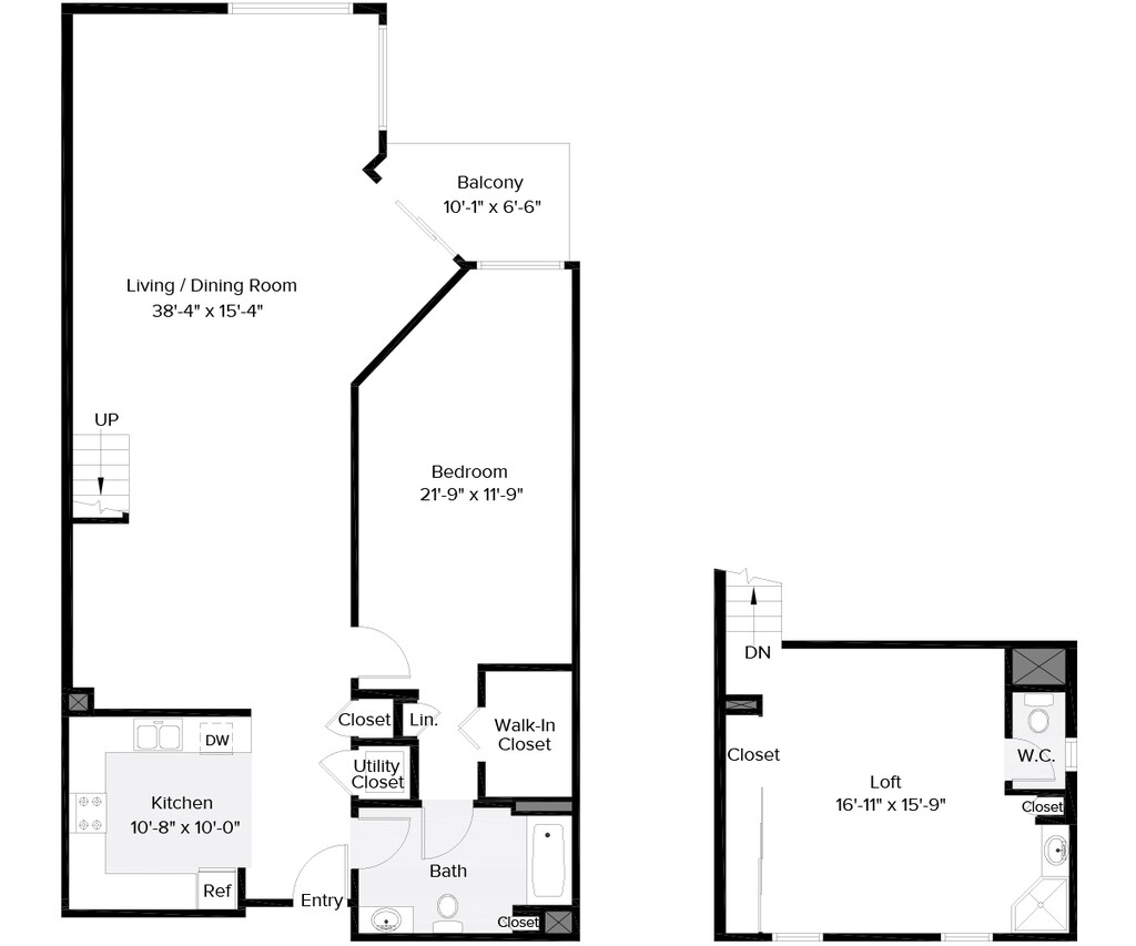 1 Dormitorio, 1 Baño, 611 pies²Disponible AhoraGalería del Modelo