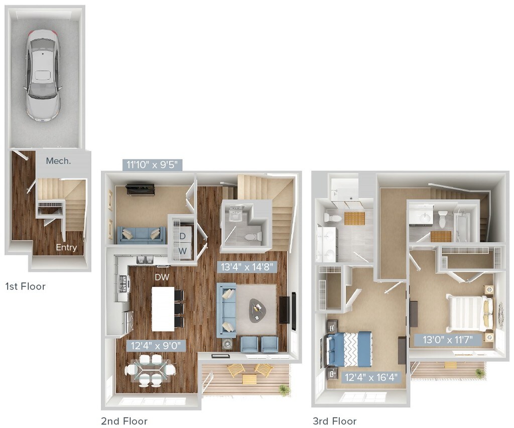 2 Dormitorios, 2 Baños, 1629 pies²Precio Mensual TotalDisponible prontoGalería del Modelo