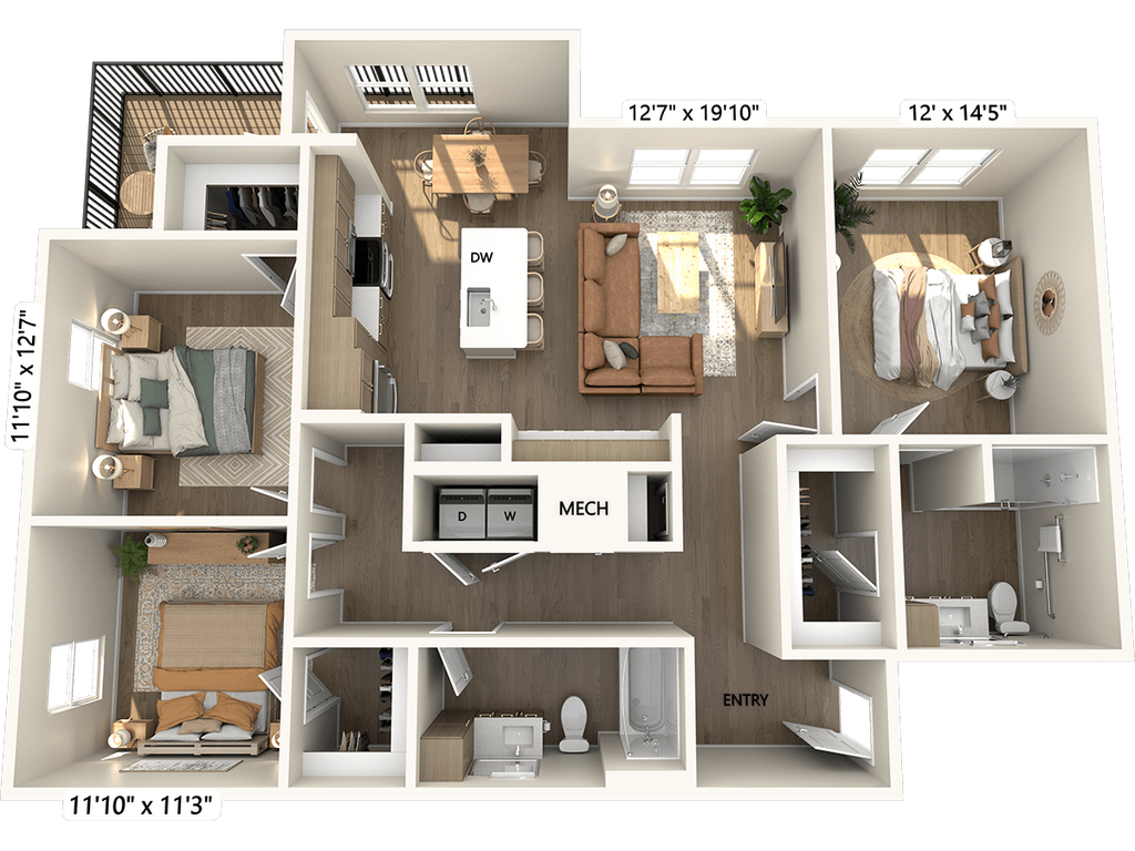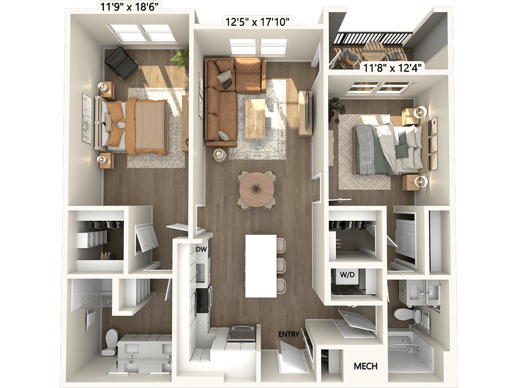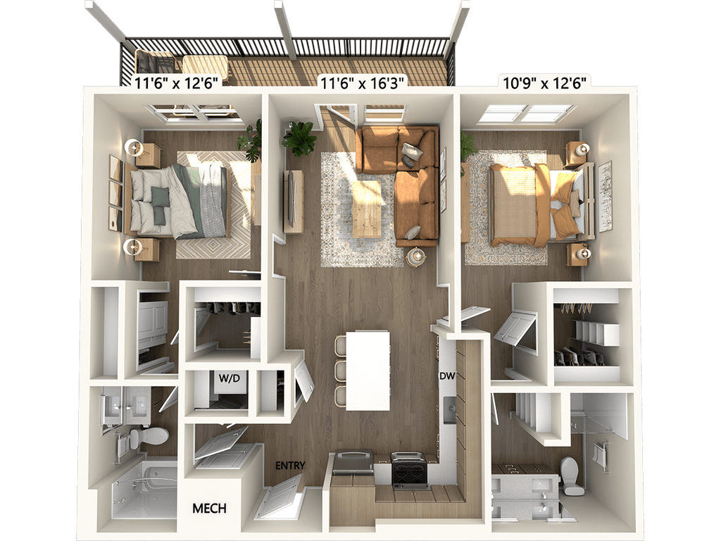 Modelo de apartamento: A1-Finish1-630Desde $1,4451 Dormitorio, 1 Baño, 630 sq ftDisponible January 30, 2026![]()