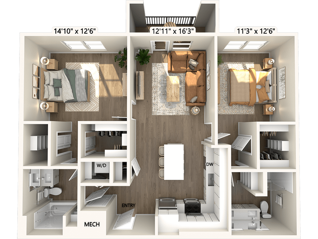 1 Dormitorio, 1 Baño, 767 pies²Disponible January 30, 2026Galería del Modelo