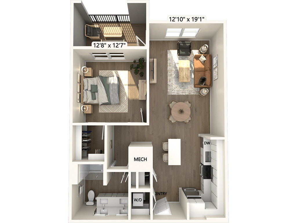 1 Dormitorio, 1 Baño, 715 pies²Disponible January 30, 2026Galería del Modelo