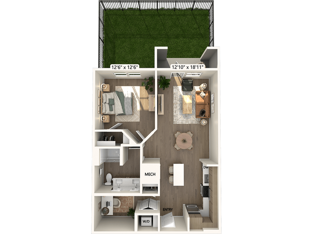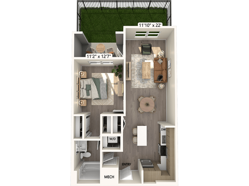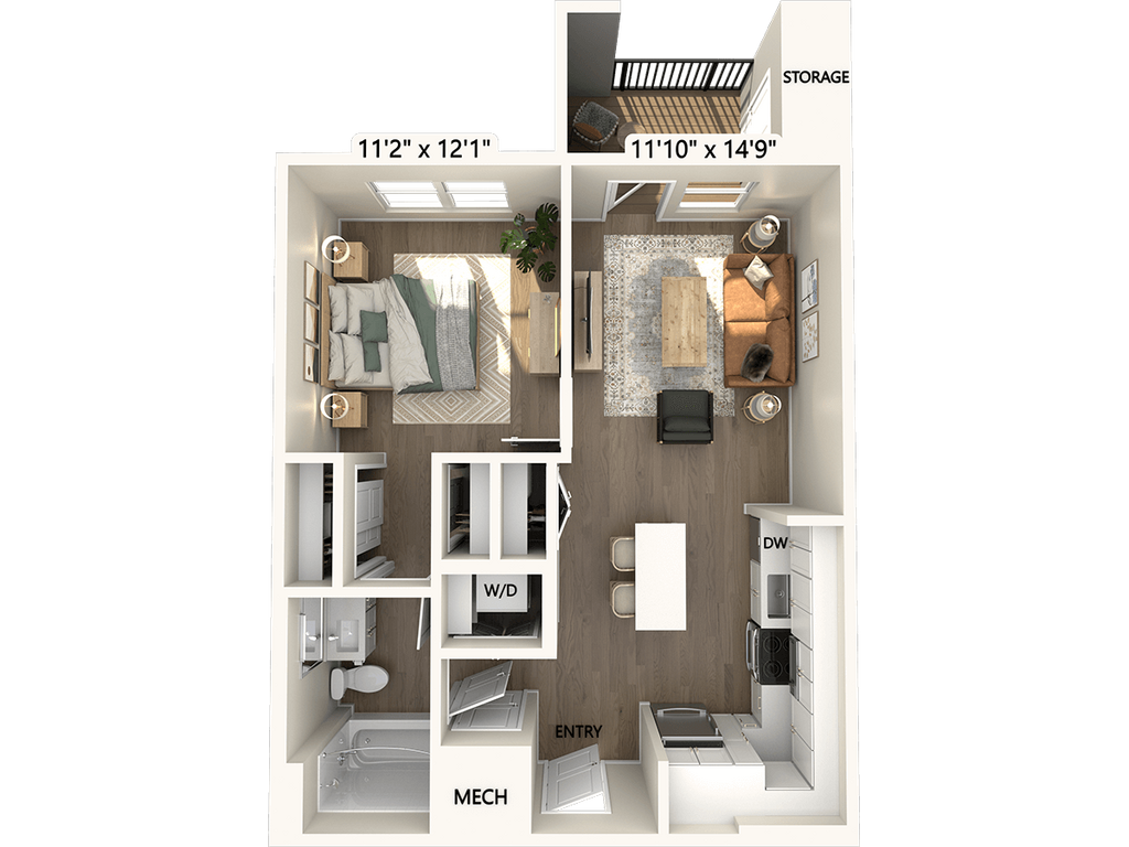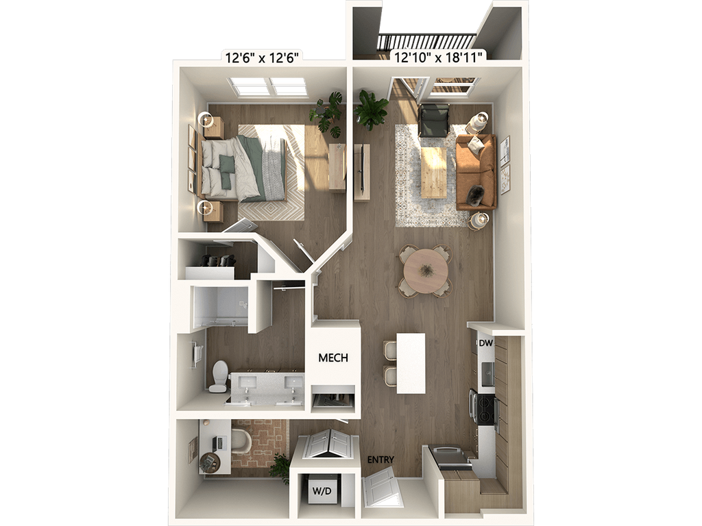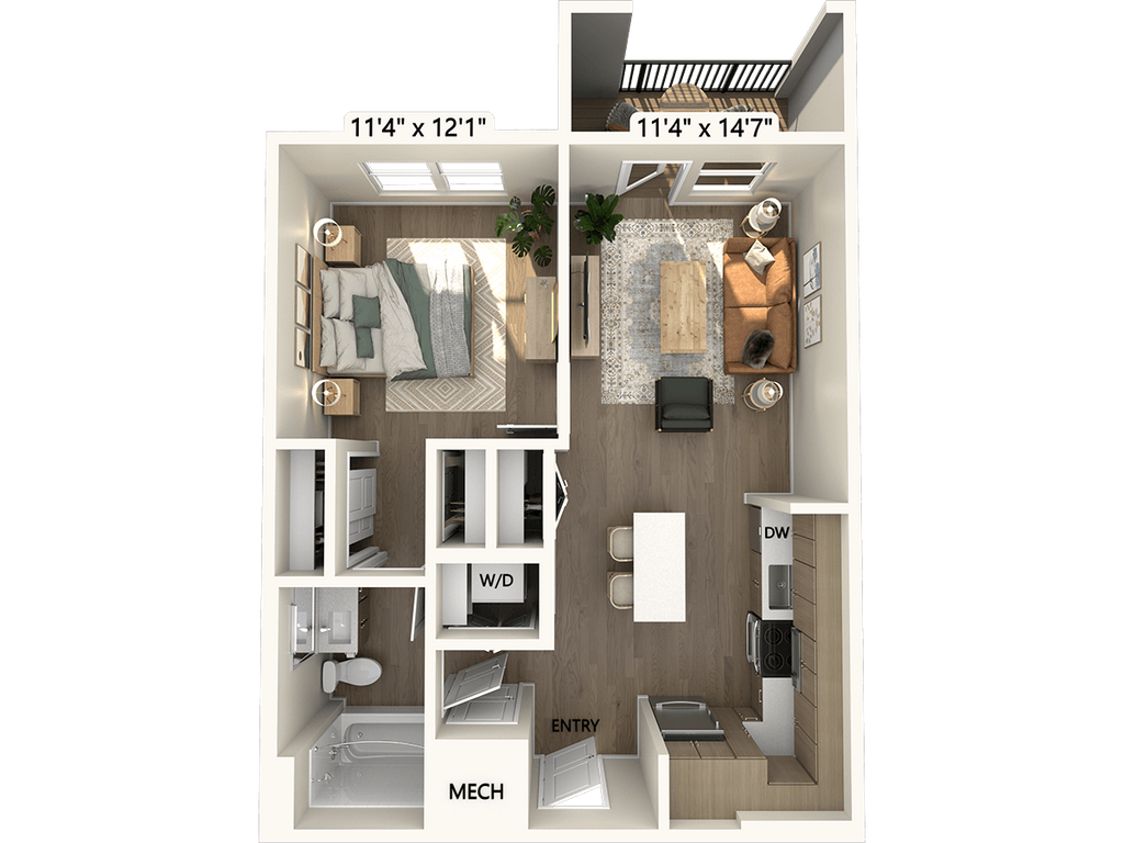 1 Dormitorio, 1 Baño, 630 pies²Disponible January 30, 2026Galería del Modelo