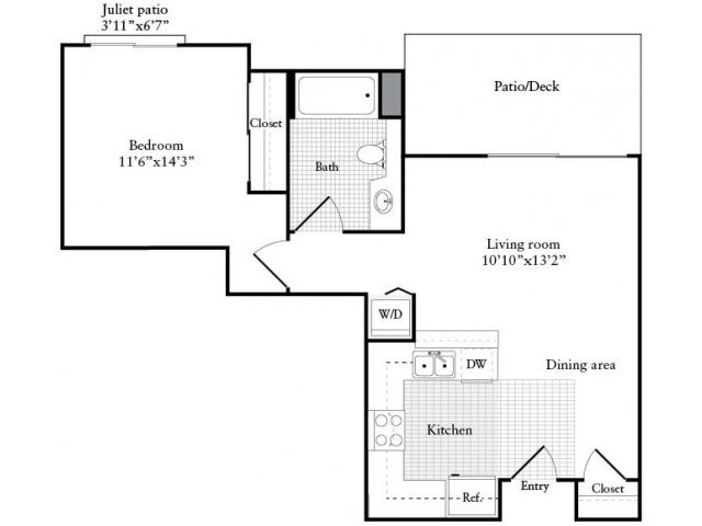 Modelo de apartamento: 7051 Dormitorio, 1 Baño, 705 sq ftDisponible prontoLos planos son representaciones artísticas. Todas las dimensiones son aproximadas. El producto y las especificaciones reales pueden variar en tamaño o detalle. No todas las características están disponibles en cada vivienda en alquiler. Por favor, consulta con un representante para obtener más detalles.