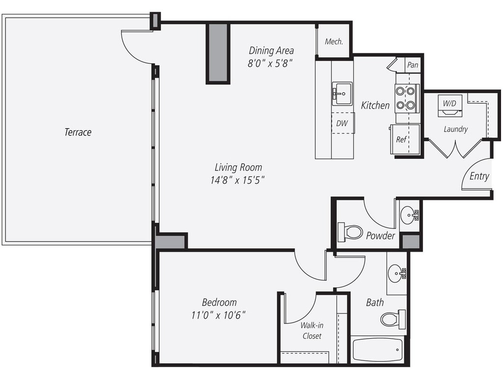 A8 - Plano Unidad de apartamento: 00W-653Modelo de apartamento: A8$3,4981 Dormitorio, 1 Baño, 786 sq ftDisponible April 20, 2026A18P