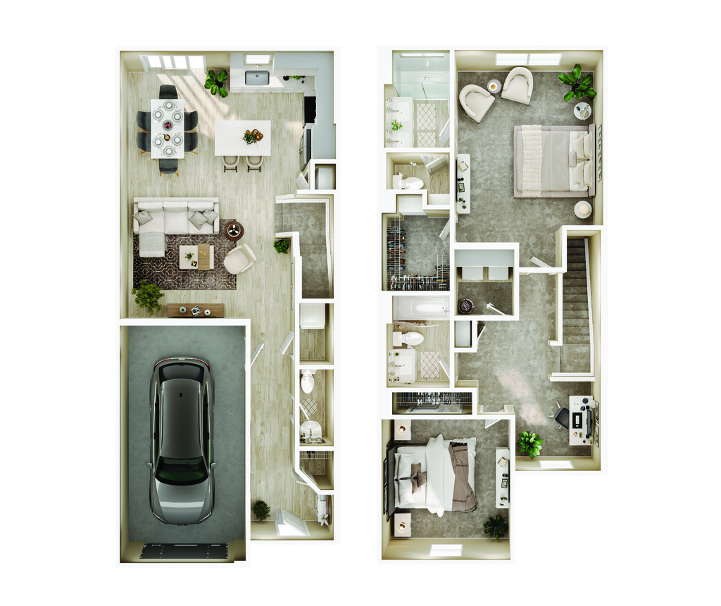 2 Dormitorios, 2.5 Baños, 1445 pies²Disponible AhoraGalería del Modelo