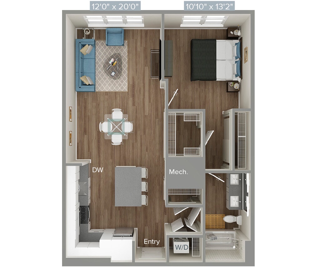 1 Dormitorio, 1 Baño, 834 pies²Disponible AhoraGalería del Modelo