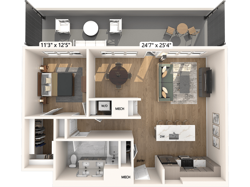 Modelo de apartamento: A25-D-Signature$3,3101 Dormitorio, 1 Baño, 1095 sq ftDisponible Ahora![]()