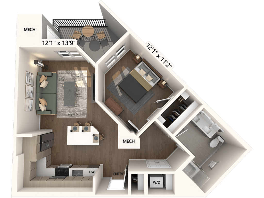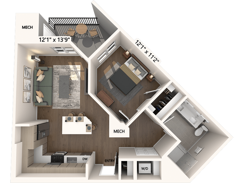 1 Dormitorio, 1 Baño, 1090 pies²Disponible Nov 4Galería del Modelo