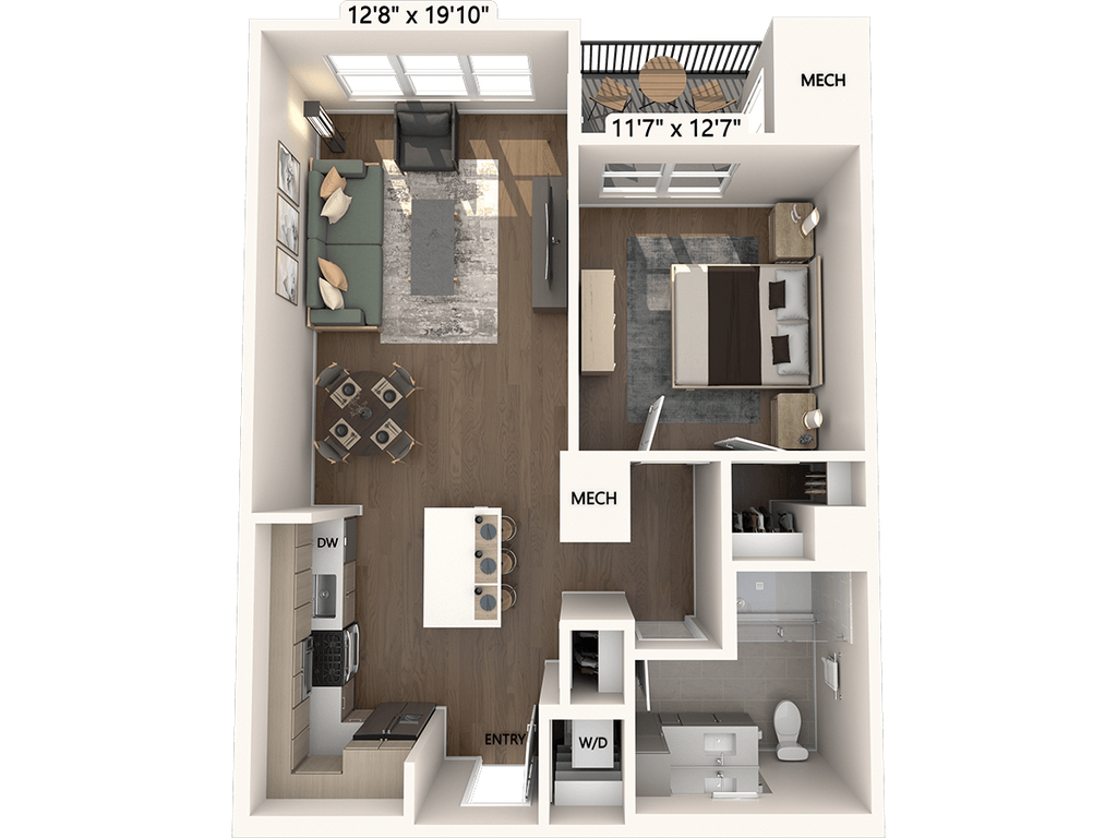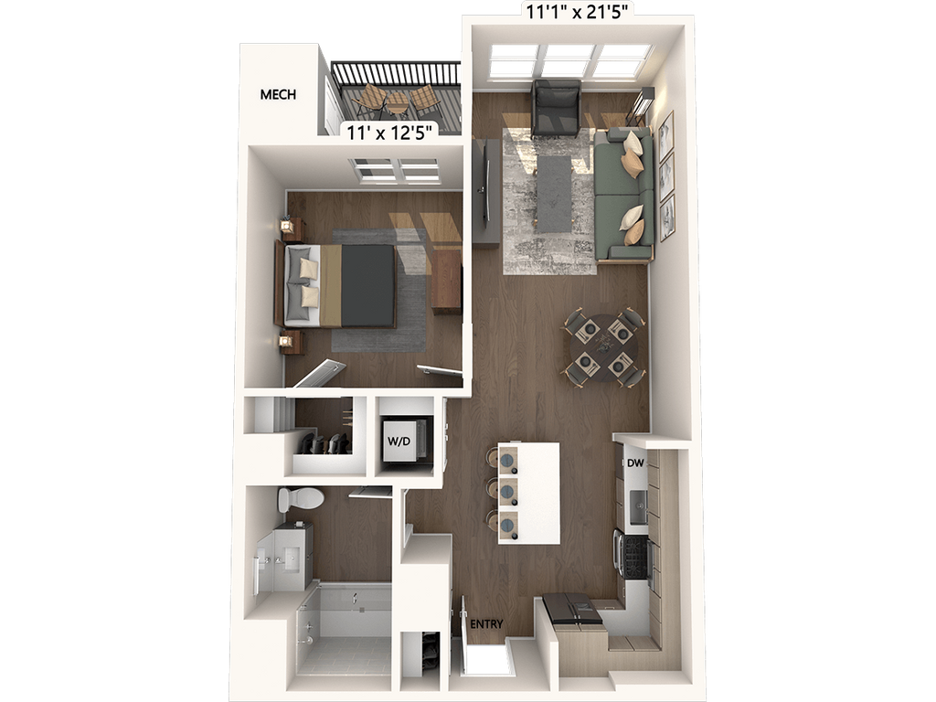 1 Dormitorio, 1 Baño, 812 pies²Disponible January 3, 2026Galería del Modelo