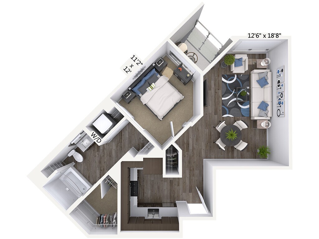 1 Dormitorio, 1 Baño, 726 pies²Precio Mensual TotalDisponible Mar 24Galería del Modelo