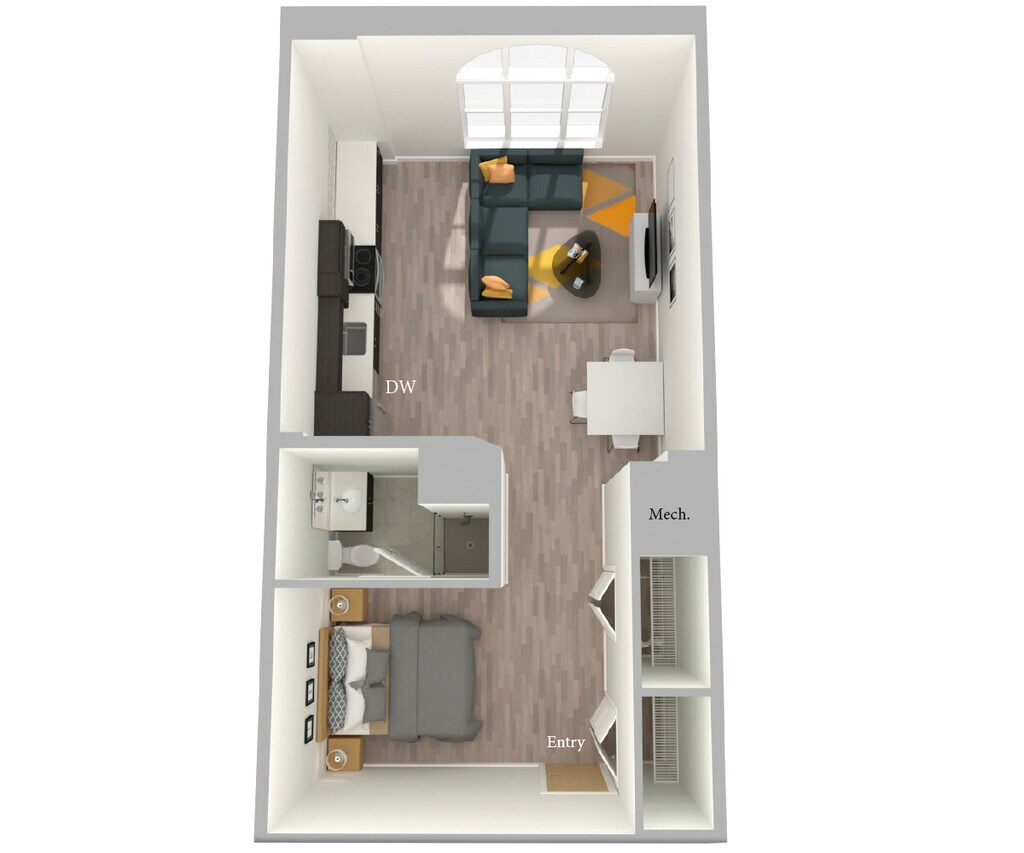 Estudio, 1 Baño, 808 pies²Disponible Oct 4El más grandeEsta opción tiene las unidades más grandes para este modeloGalería del Modelo