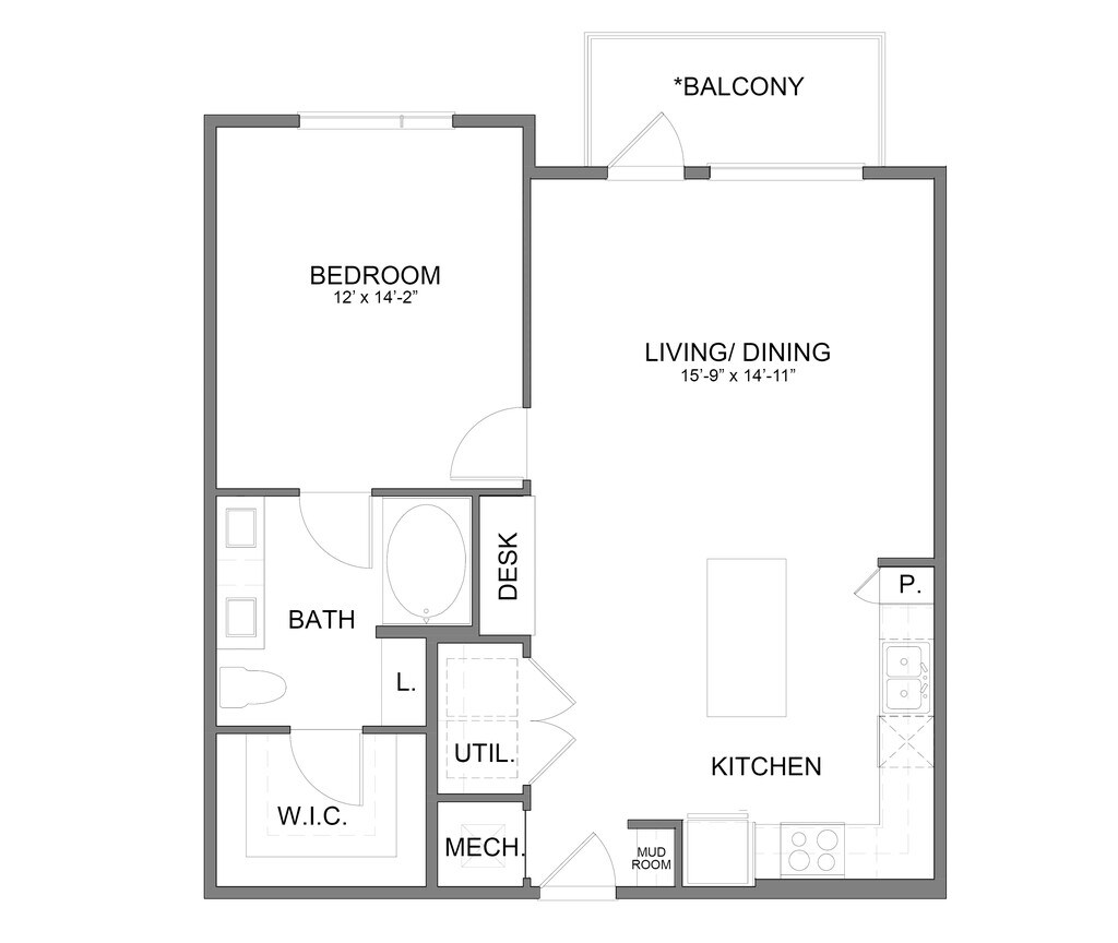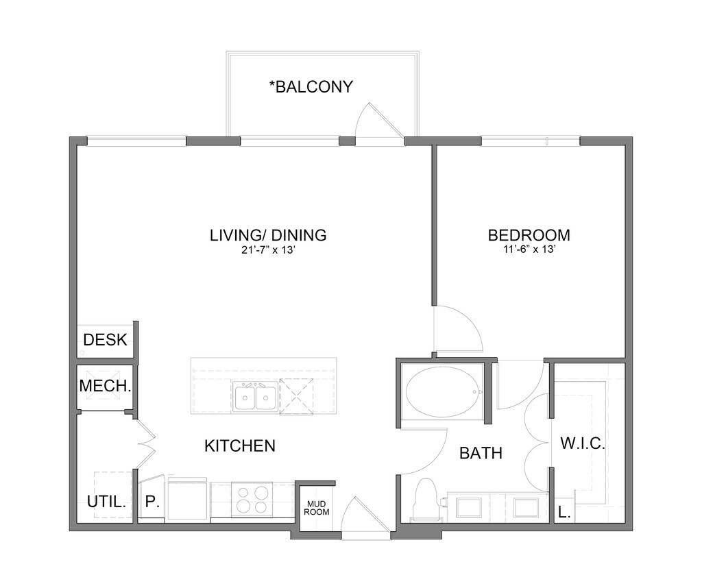 1 Dormitorio, 1 Baño, 699 pies²Disponible Nov 29Galería del Modelo