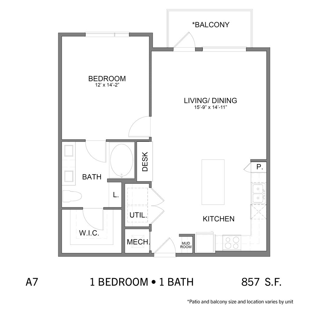 A3-740sf - Plano 1 Unidad de apartamento: 002-1043Modelo de apartamento: A3-740sf$1,4701 Dormitorio, 1 Baño, 740 sq ftDisponible ProntoA5-759sf