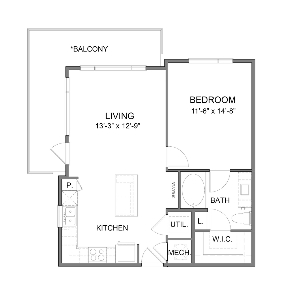 1 Dormitorio, 1 Baño, 740 pies²Disponible prontoGalería del Modelo