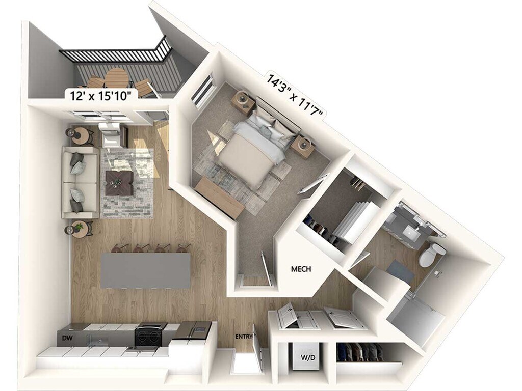 AM08 - Plano 1 Unidad de apartamento: 427Modelo de apartamento: AM08$1,5951 Dormitorio, 1 Baño, 667 sq ftDisponible ProntoPlano: A6a