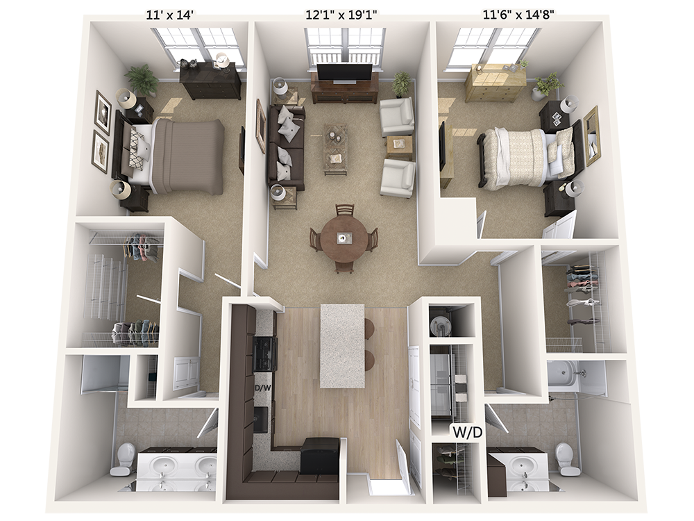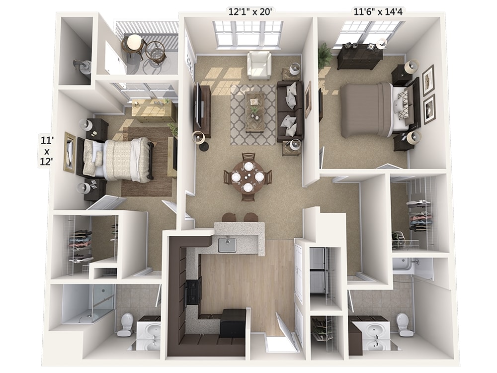 2 Dormitorios, 2 Baños, 1187 pies²Disponible AhoraGalería del Modelo