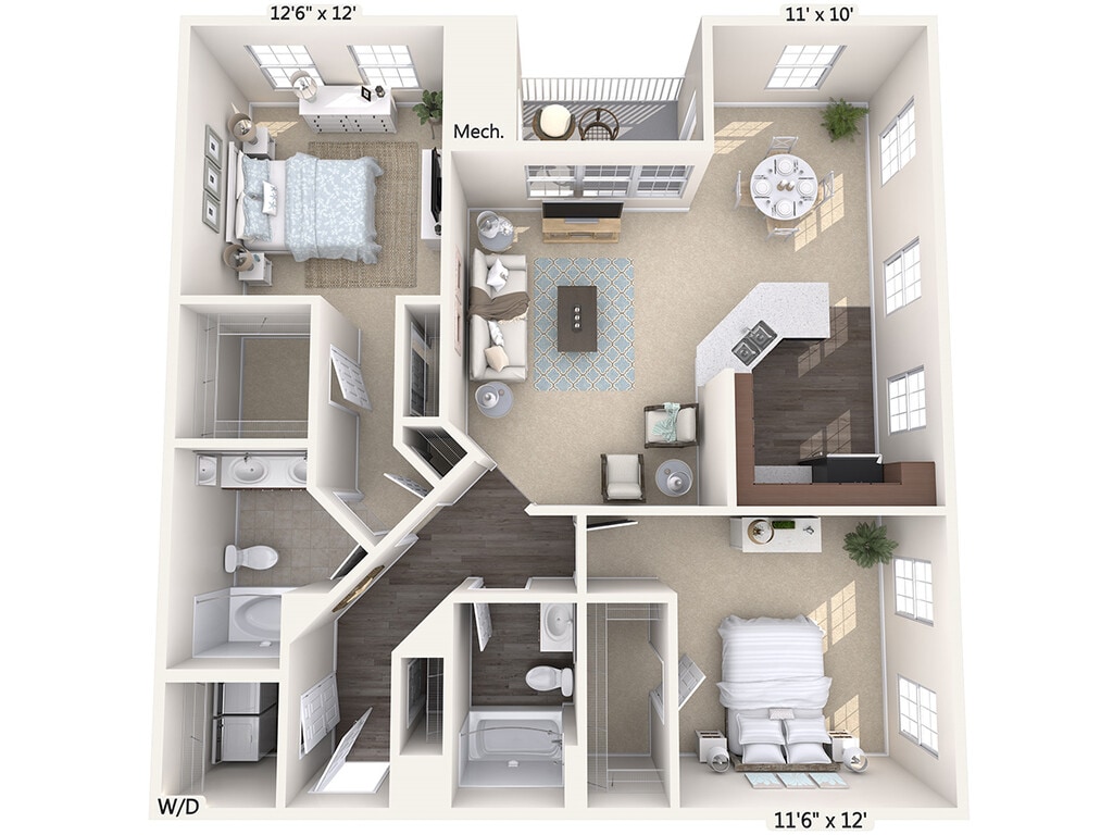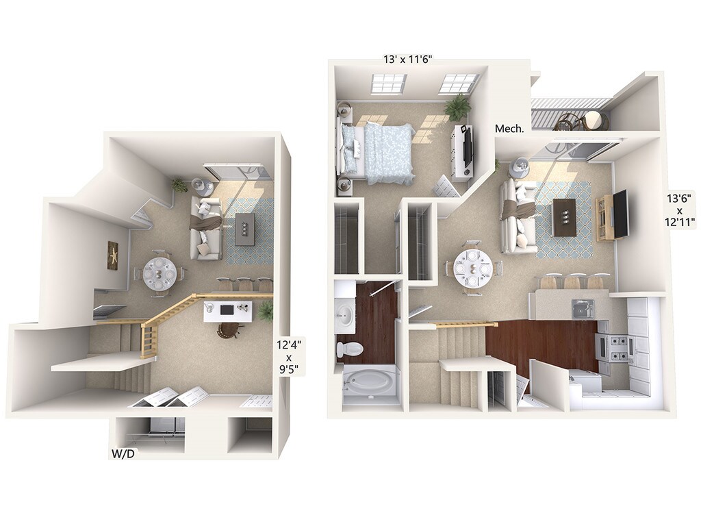 1 Dormitorio, 1 Baño, 740-826 pies²Precio Mensual TotalDisponible AhoraPrecio Mensual Total