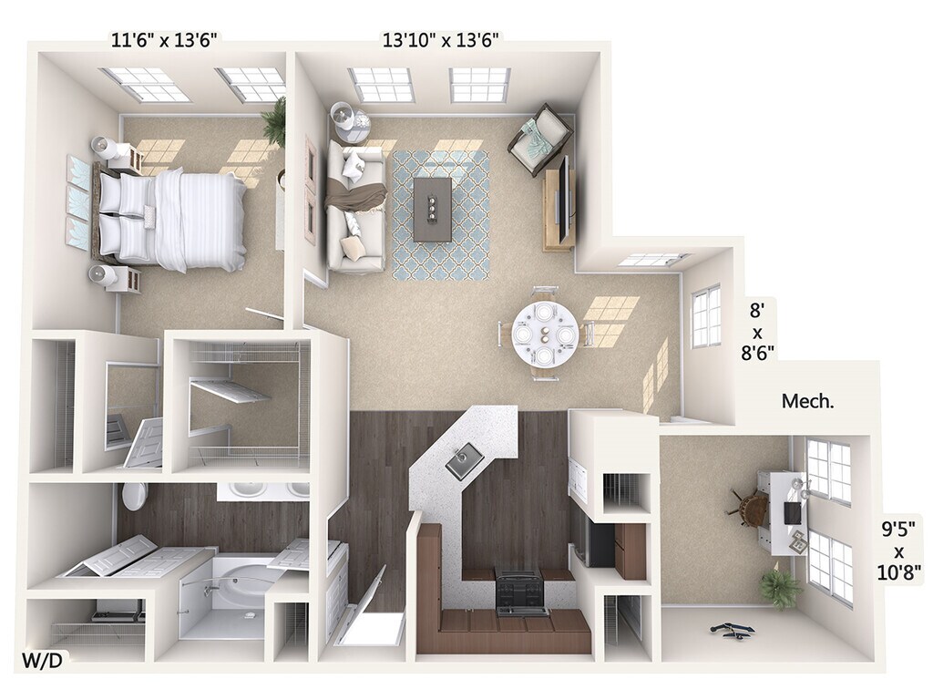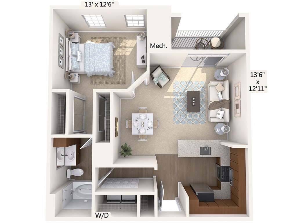 1 Dormitorio, 1 Baño, 652-740 pies²Disponible prontoGalería del Modelo