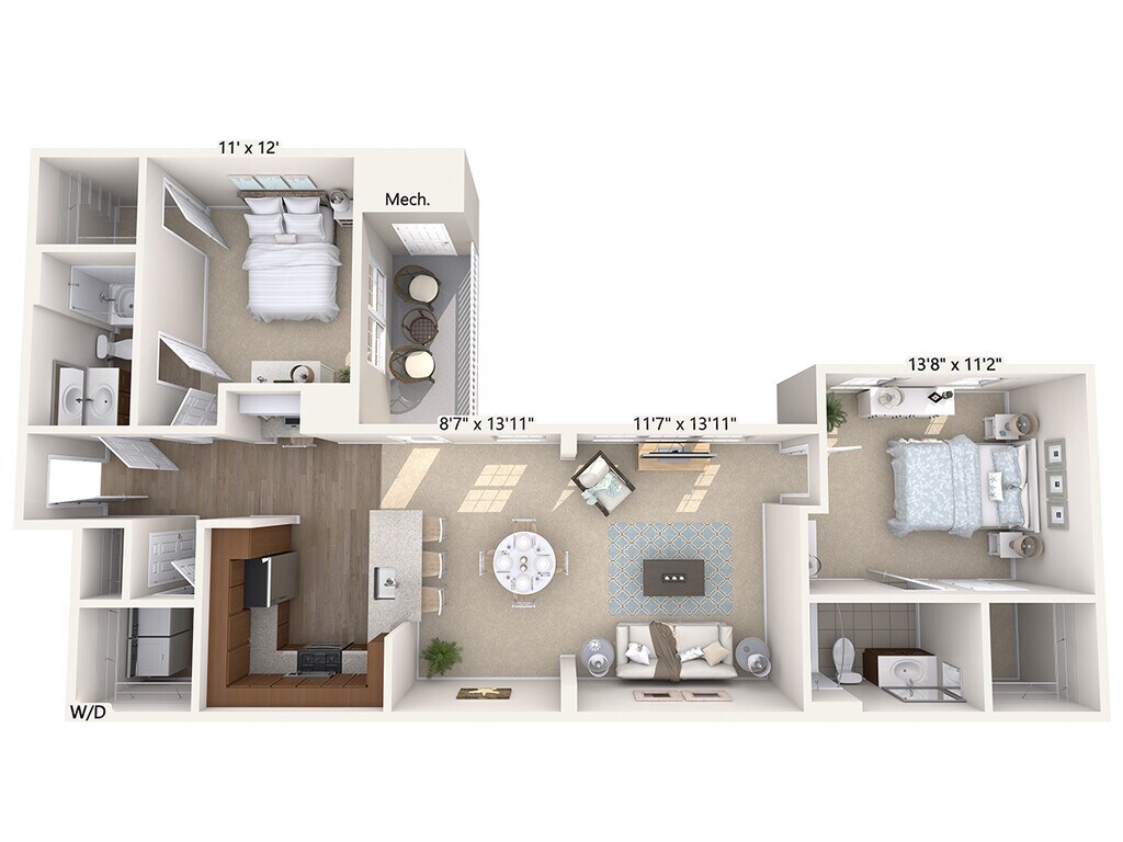 Modelo de apartamento: A2-E-UpperDesde $2,2251 Dormitorio, 1 Baño, 740 sq ftDisponible AhoraLos planos son representaciones artísticas. Todas las dimensiones son aproximadas. El producto y las especificaciones reales pueden variar en tamaño o detalle. No todas las características están disponibles en cada vivienda en alquiler. Por favor, consulta con un representante para obtener más detalles.