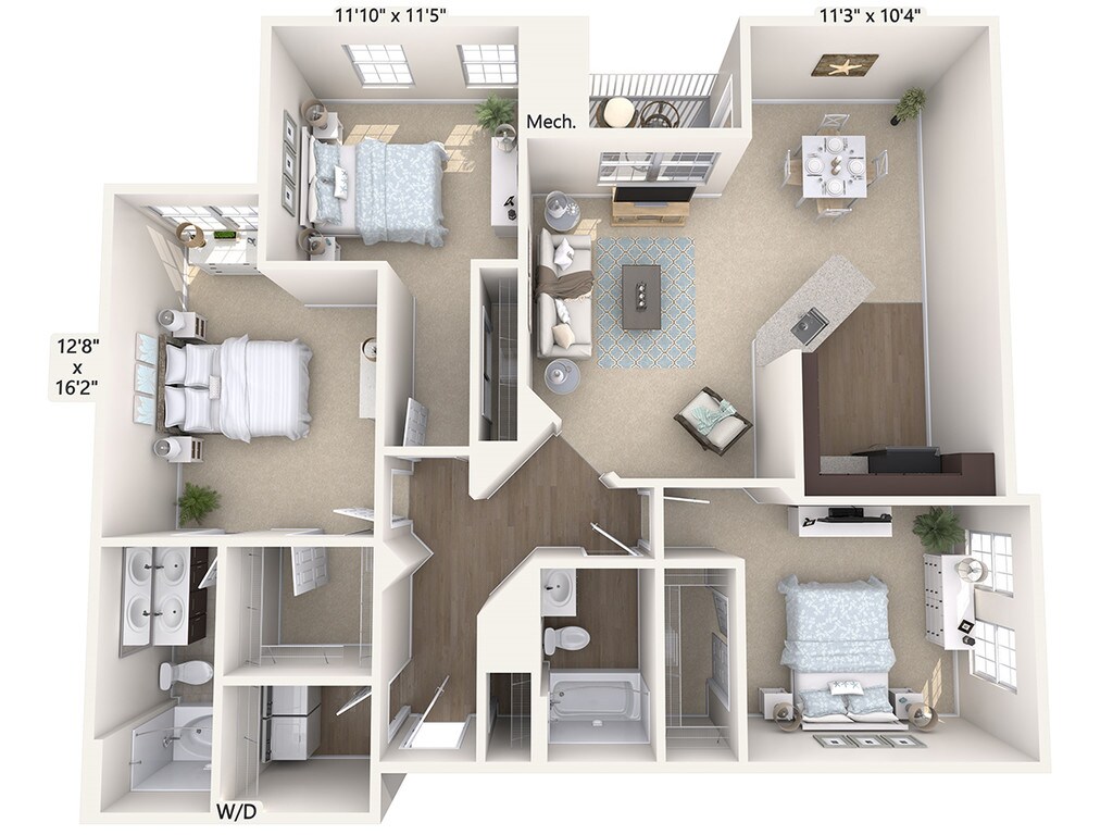 Modelo de apartamento: A3-E-Floor1$2,0321 Dormitorio, 1 Baño, 740 sq ftDisponible pronto![]()