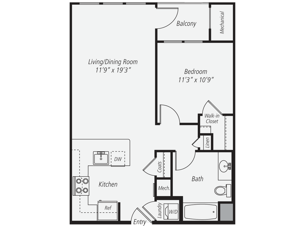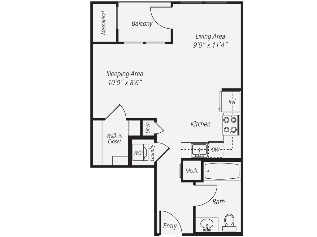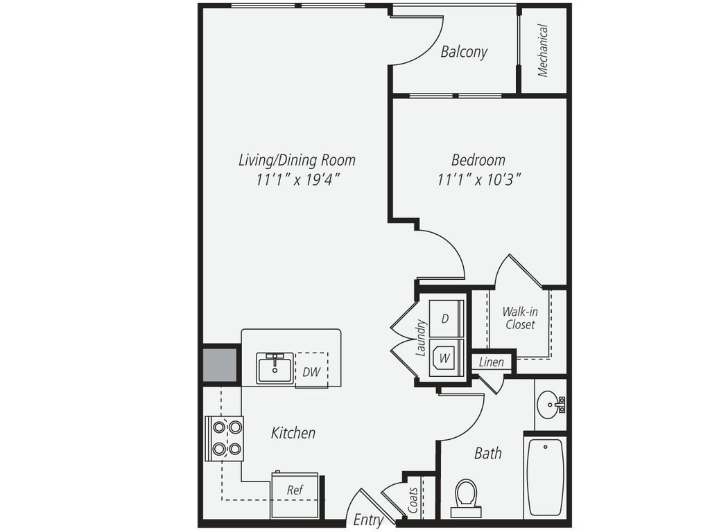 Modelo de apartamento: A1-AD$3,3631 Dormitorio, 1 Baño, 704 sq ftDisponible AhoraLos planos son representaciones artísticas. Todas las dimensiones son aproximadas. El producto y las especificaciones reales pueden variar en tamaño o detalle. No todas las características están disponibles en cada vivienda en alquiler. Por favor, consulta con un representante para obtener más detalles.