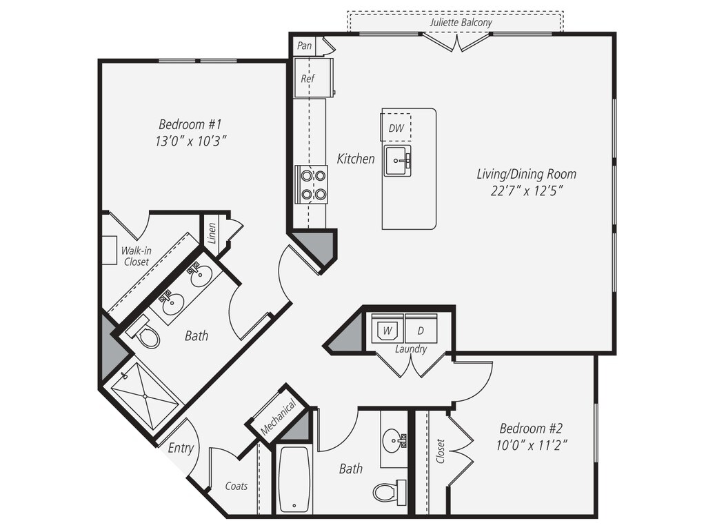 Modelo de apartamento: B1$4,0832 Dormitorios, 2 Baños, 1089 sq ftDisponible AhoraLos planos son representaciones artísticas. Todas las dimensiones son aproximadas. El producto y las especificaciones reales pueden variar en tamaño o detalle. No todas las características están disponibles en cada vivienda en alquiler. Por favor, consulta con un representante para obtener más detalles.
