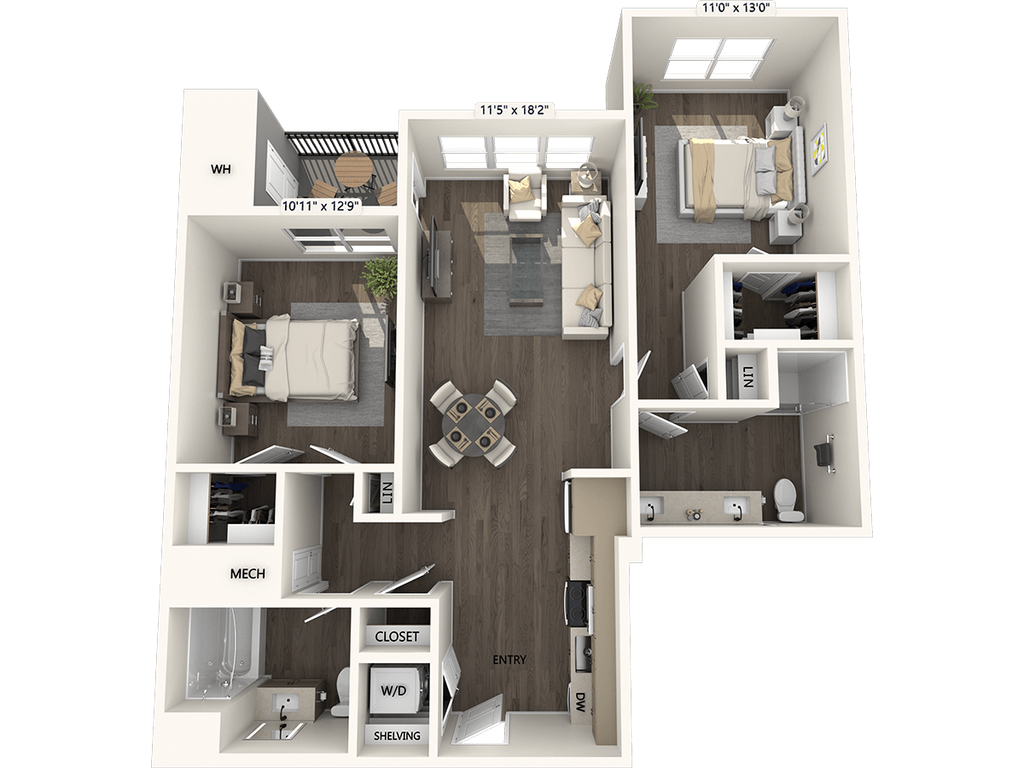 Modelo de apartamento: B09-Upgrade Collection II$3,5602 Dormitorios, 2 Baños, 1073 sq ftDisponible April 15, 2026![]()