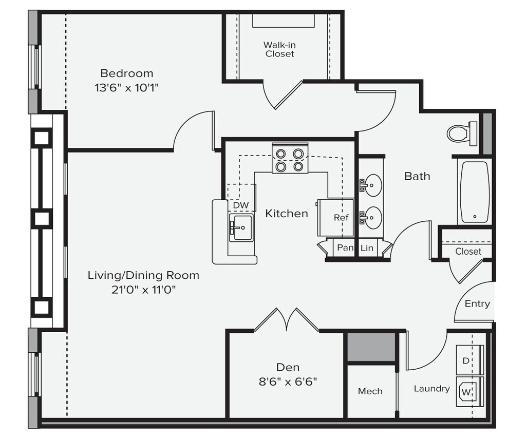 1 Dormitorio, 1 Baño, 866 pies²Precio Mensual TotalDisponible January 7, 2026Galería del Modelo
