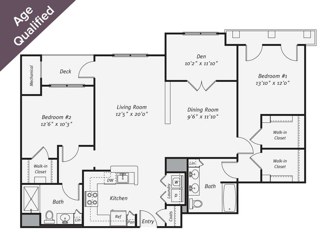 Modelo de apartamento: A3Desde $2,7851 Dormitorio, 1 Baño, 927 sq ftDisponible Ahora![]()