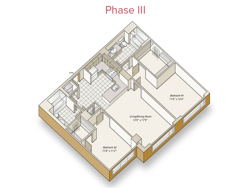 Modelo de apartamento: A3-MDesde $4,2051 Dormitorio, 1 Baño, 825-860 sq ftDisponible Ahora![]()