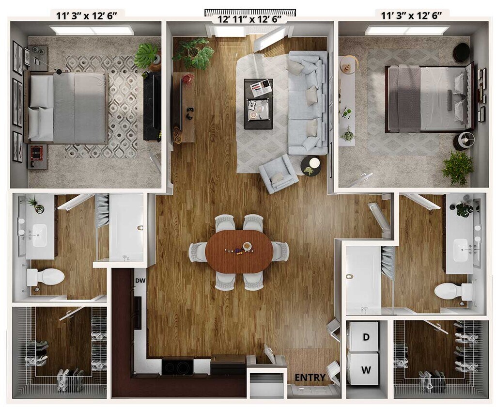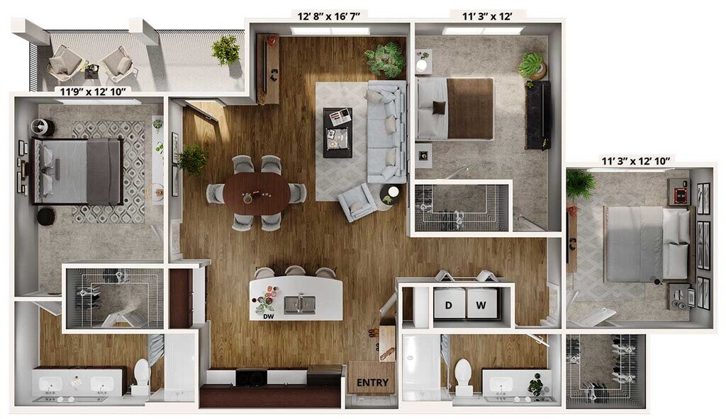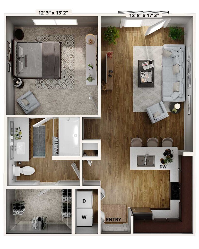 Modelo de apartamento: A3Desde $1,4501 Dormitorio, 1 Baño, 824 sq ftDisponible December 6, 2025![]()