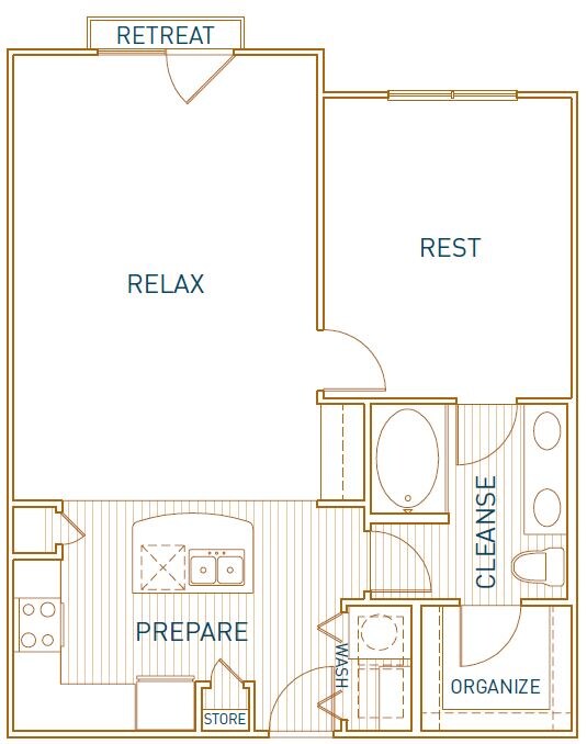 1 Dormitorio, 1 Baño, 725 pies²Disponible AhoraGalería del Modelo