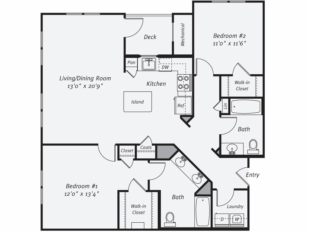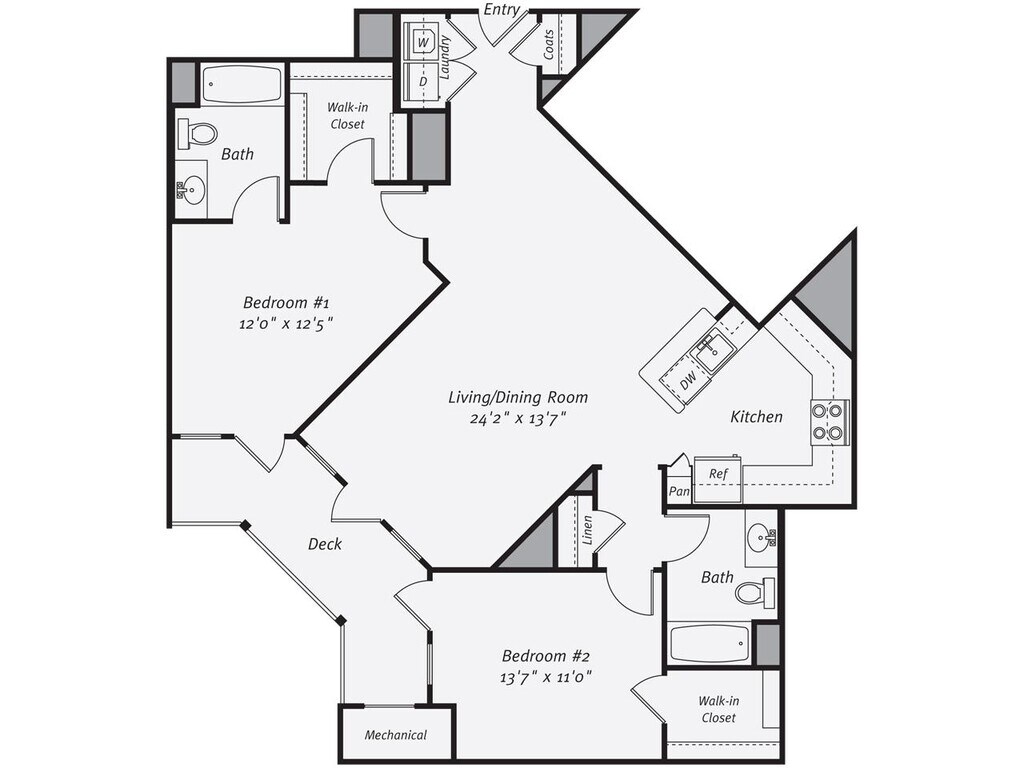 Modelo de apartamento: A2$2,6251 Dormitorio, 1 Baño, 781 sq ftDisponible Ahora![]()